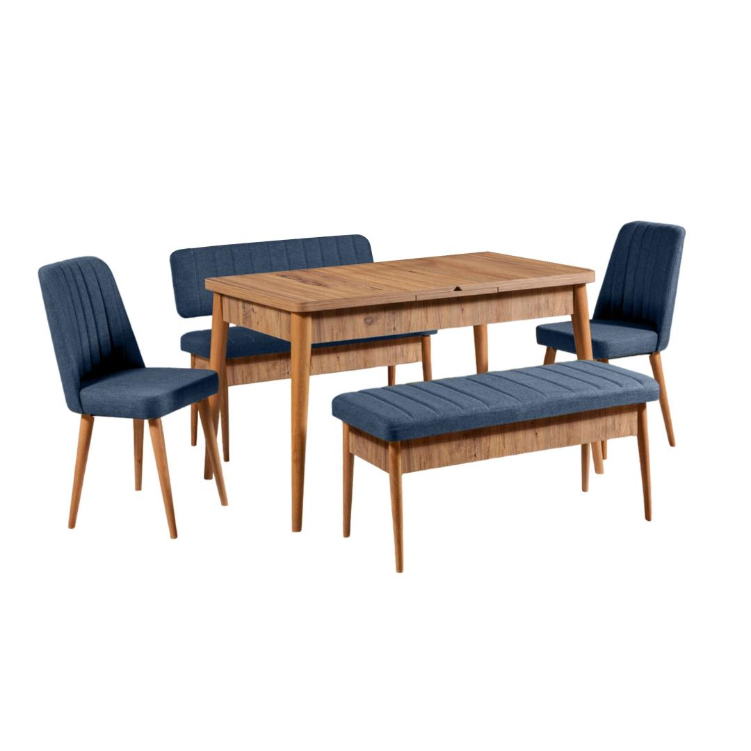 Extendable Dining Table & Chairs Set (5 Pieces) Vina Atlantic Dark Blue
