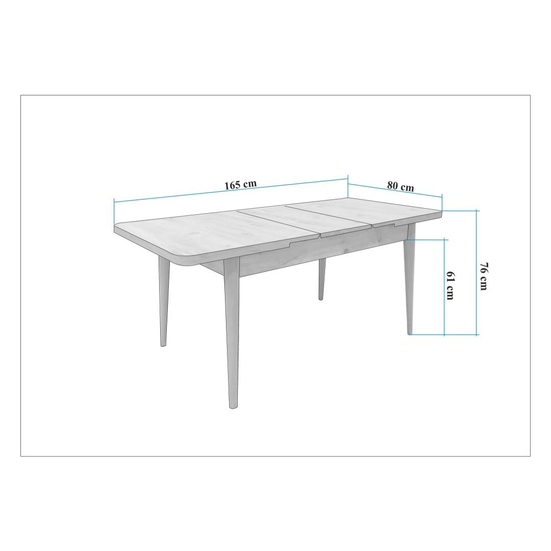 - Open Table Size: Width: 165 cm, Height: 76 cm, Depth: 80 cm