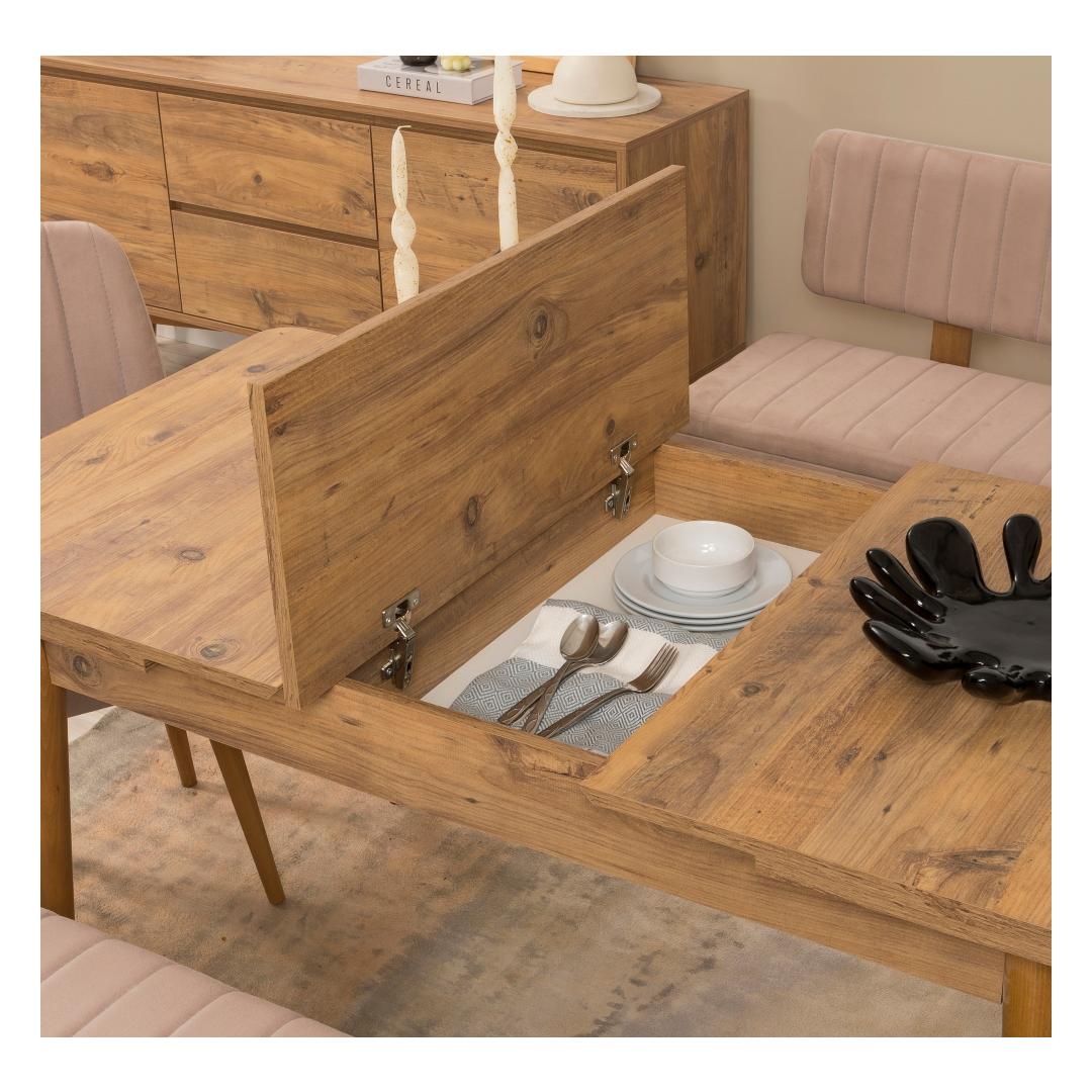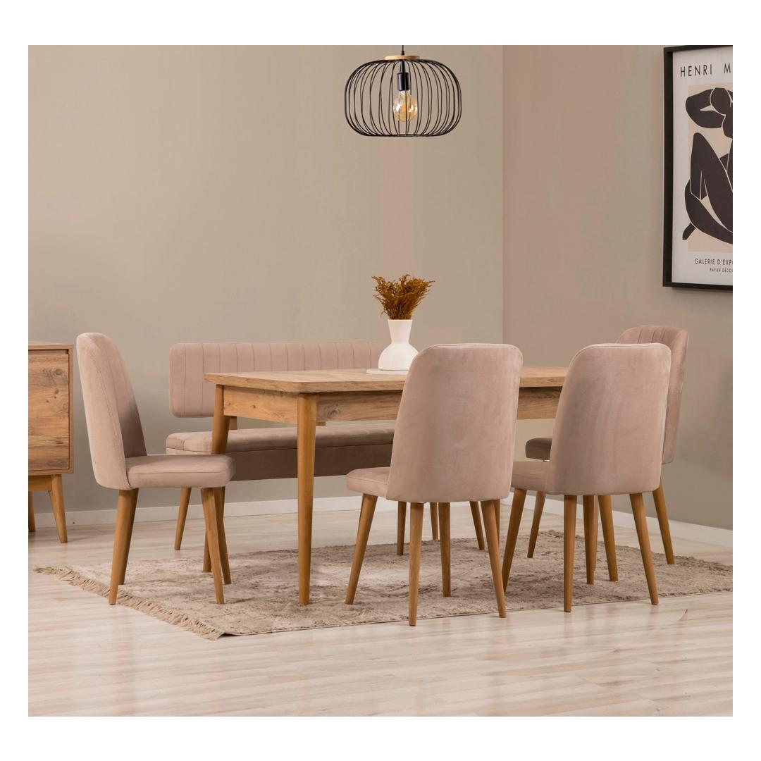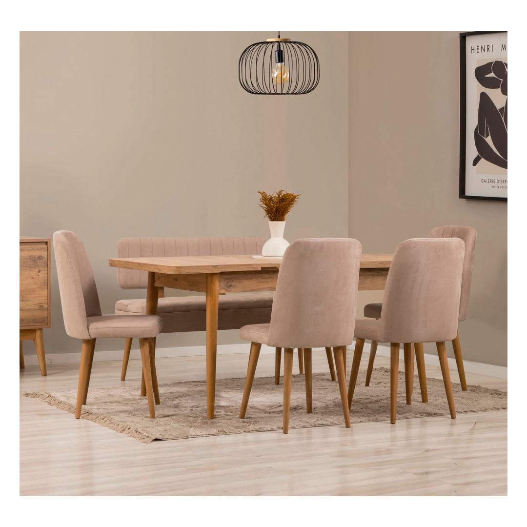 Extendable Dining Table & Chairs Set (6 Pieces) Vina - Atlantic Pine, Stone