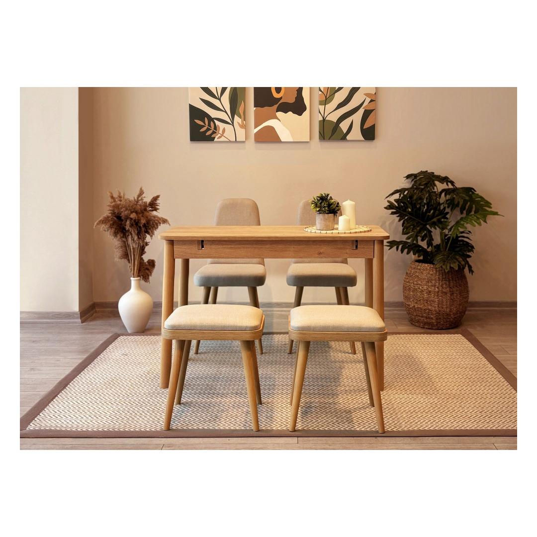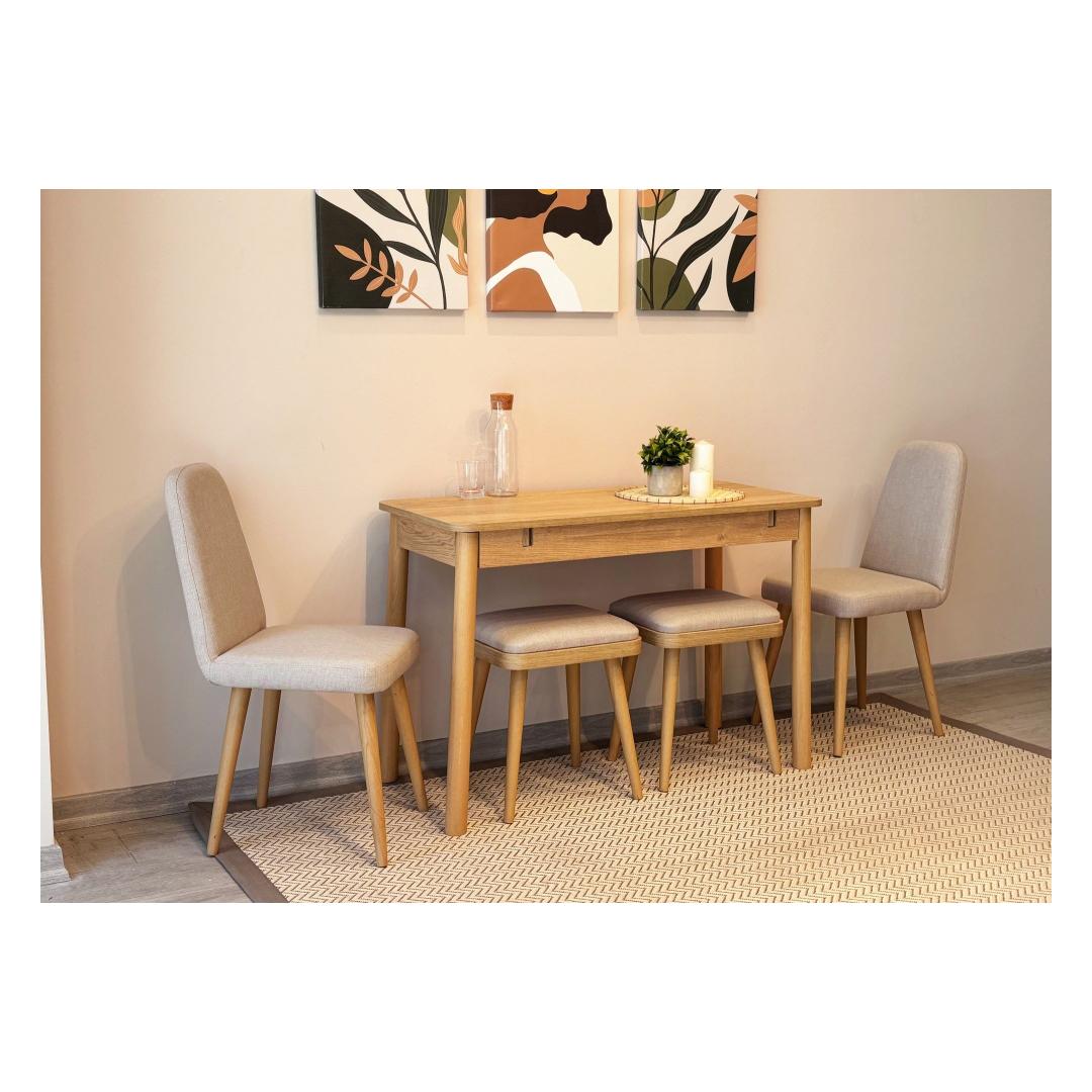 Extendable Dining Table & Chairs Set (5 Pieces) Vina Mini 02 1005 - Oak, Cream