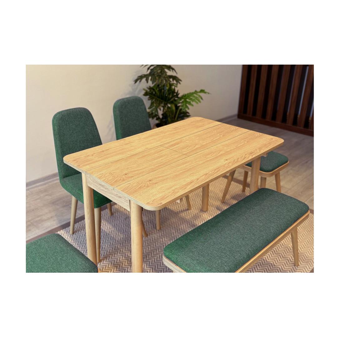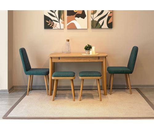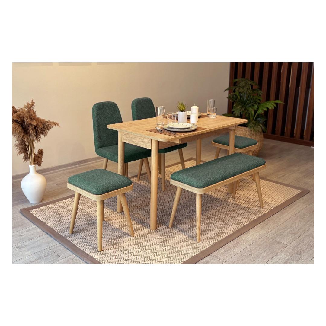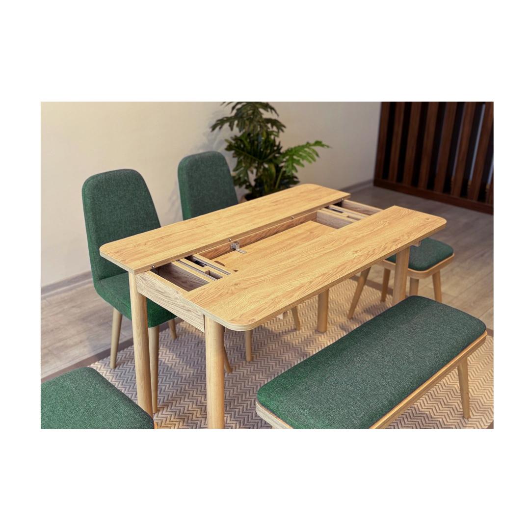 Extendable Dining Table & Chairs Set (6 Pieces) Vina Mini 03 1070 - Oak, Green