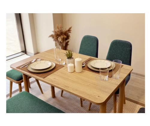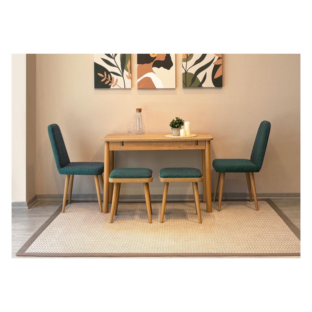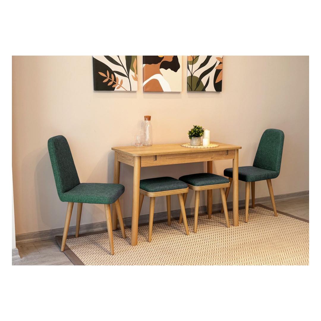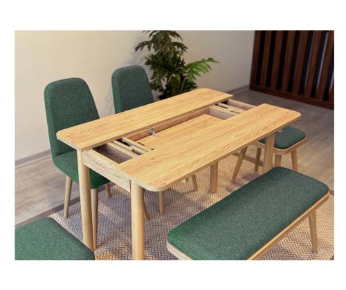 Extendable Dining Table & Chairs Set (6 Pieces) Vina Mini 03 1070 - Oak, Green