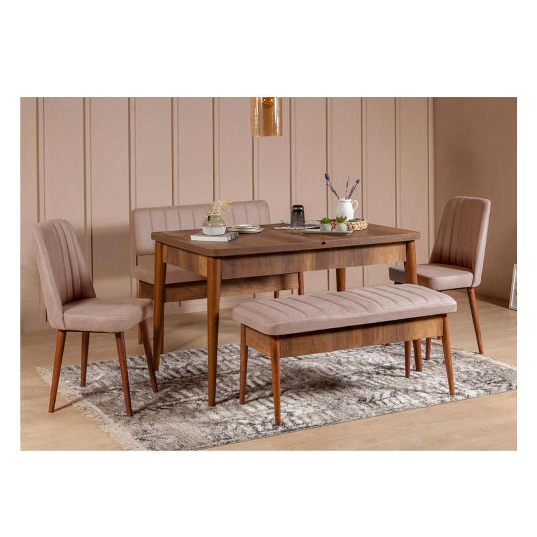 Extendable Dining Table & Chairs Set (5 Pieces) Vina Walnut Stone