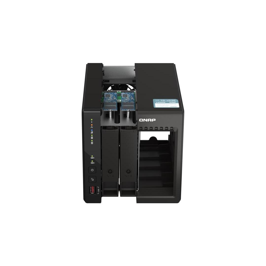 TS-253E:ssä on 2,5 GbE-yhteys, 8 Gt RAM-muistia ja M.2-paikat NVMe SSD -välimuistitallennusta varten, mikä tarjoaa korkean suorituskyvyn esimerkiksi valvontajärjestelmien, virtuaalikoneiden, tiedostopalvelimien tai varmuuskopiointipalvelimien kaltaisiin sovelluksiin. Kaksi HDMI-ulostuloa tarjoavat myös suoran multimediatoiston ja vankan valvontamonitoroinnin. QNAP tarjoaa TS-253E:lle pitkäaikaisen saatavuuden ja tuen, mikä on erinomainen valinta yrityksille, jotka tarvitsevat yhteensopivia NAS-malleja useissa eri toimipisteissä.