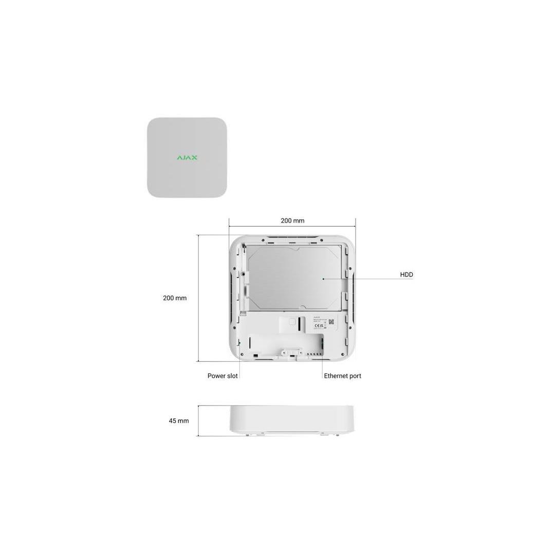 8 kanavaa, jopa 4K, H.265/H.264, jopa 100 Mbps kaistanleveys, jopa 16 TB 3,5" levytallennus (ei sisälly). Yhteensopiva kaikkien Ajax-keskusten kanssa