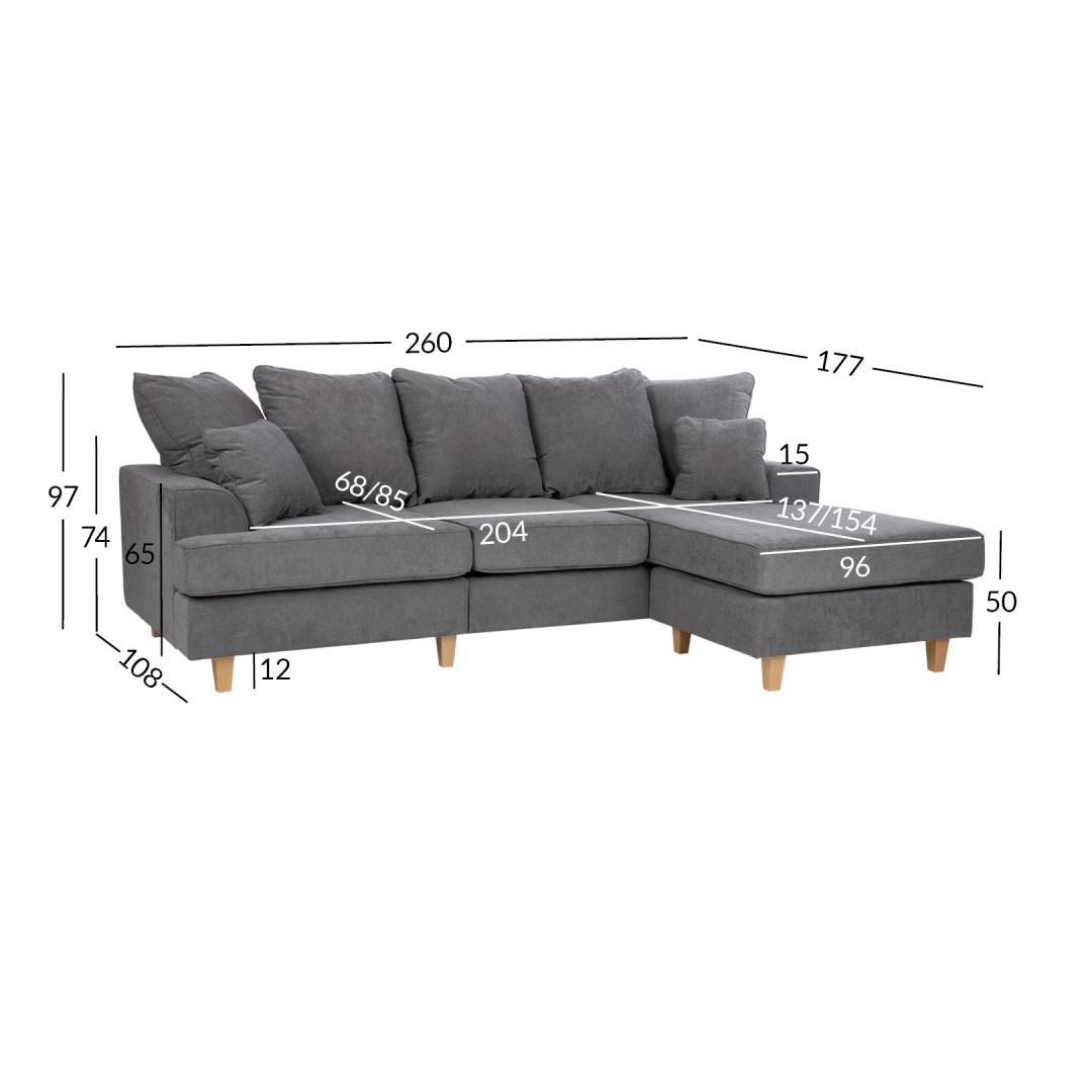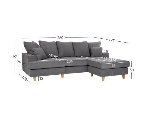 Kulmasohva JAMAICA 260x108/177xK97cm, harmaa
