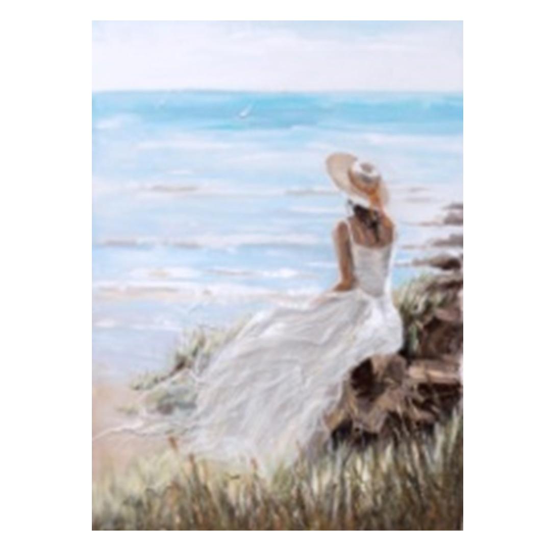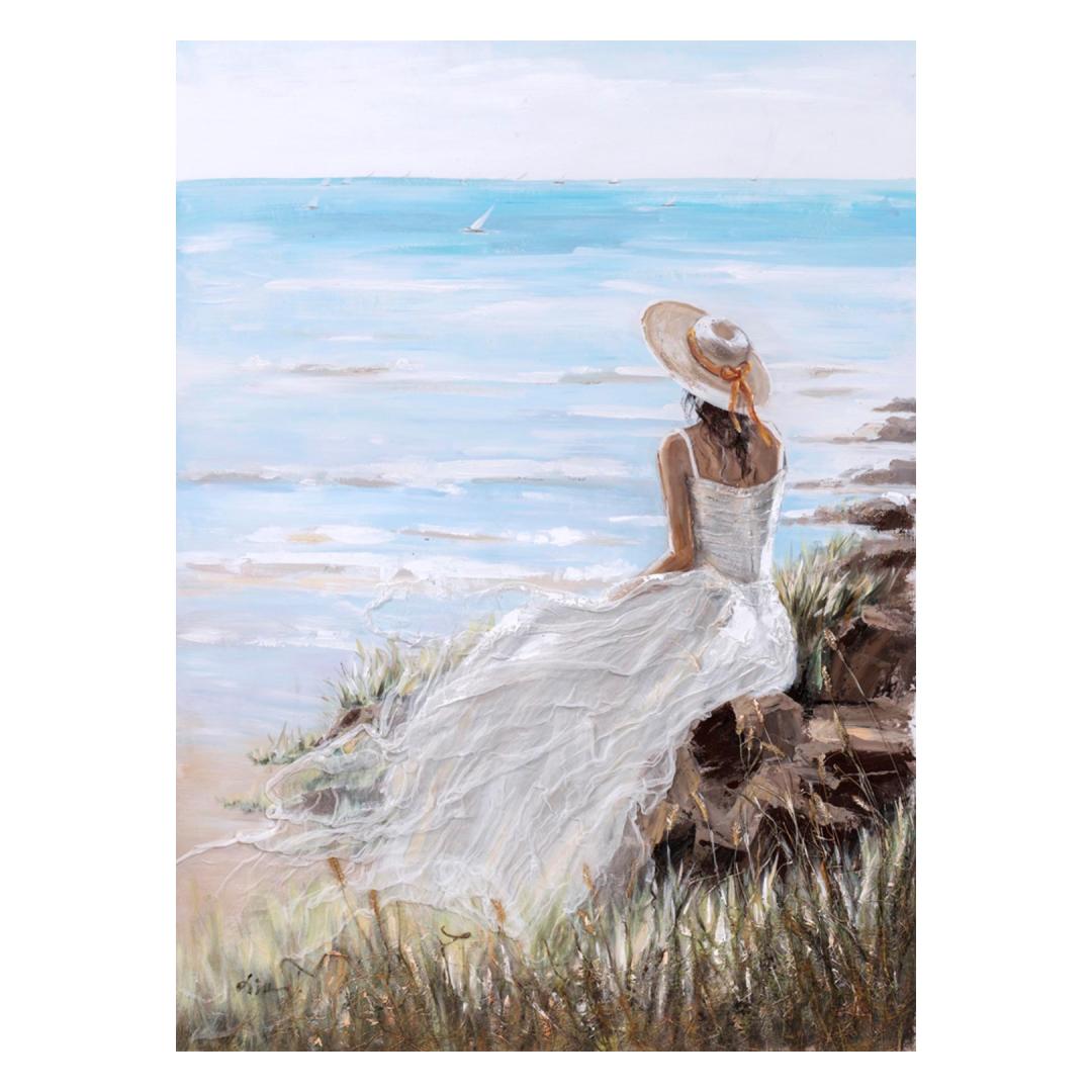 Öljyvärimaalaus 90x120cm, nainen rannalla