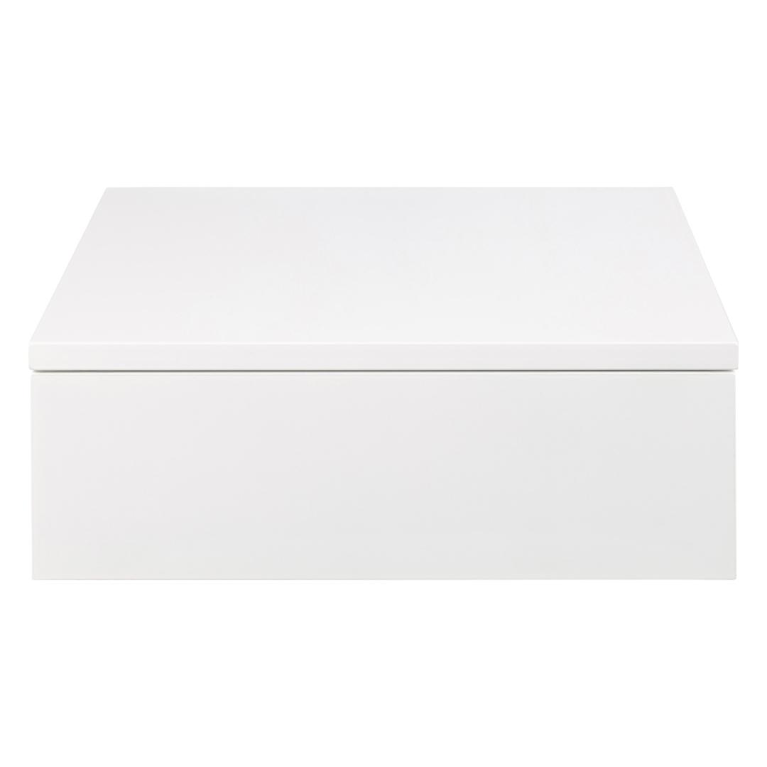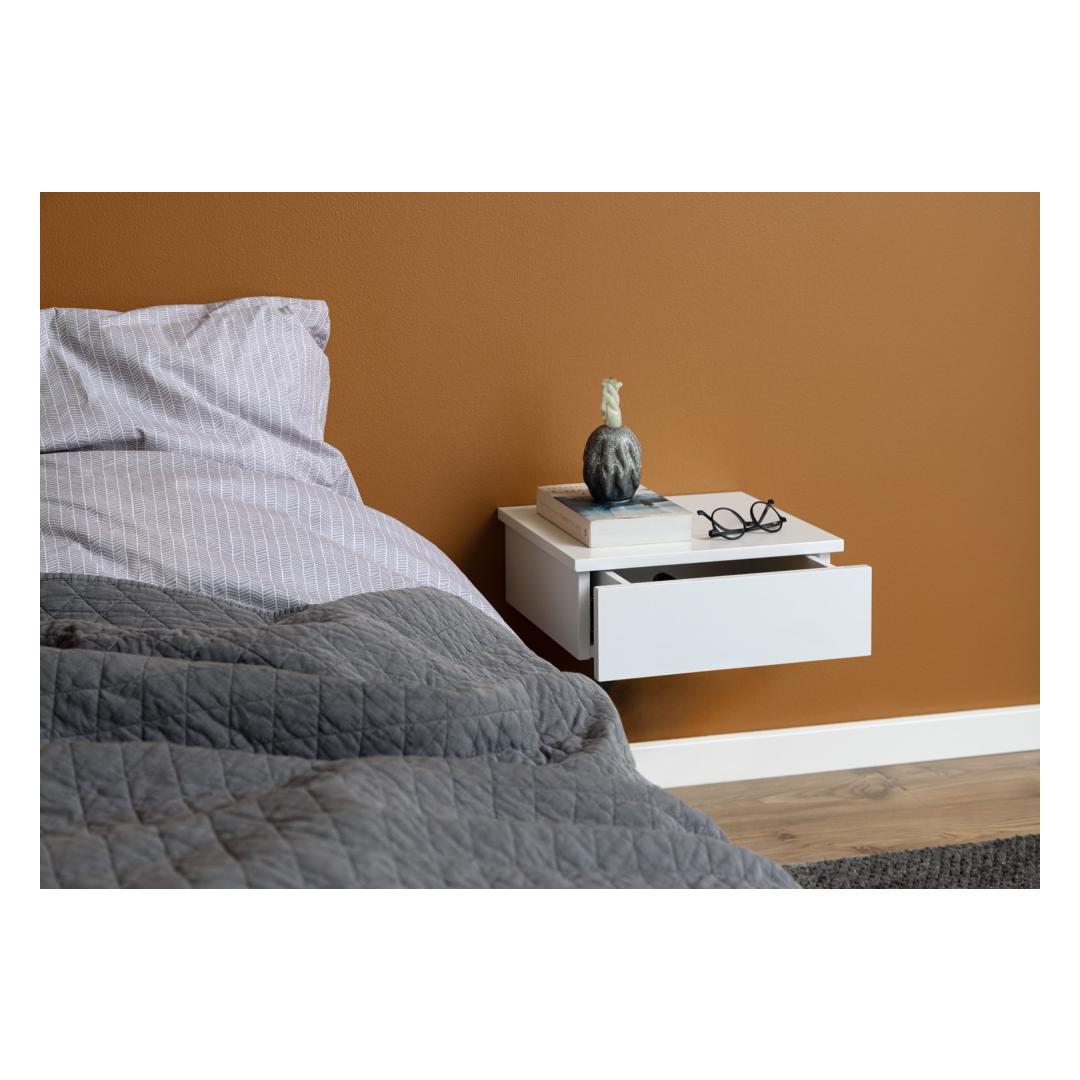 The ideal bedside table for minimalism enthusiasts. Simple rectangular form, clean lines, storage. It comes in a convenient size and includes 1 drawer for books or glasses. Wall mount bedside table, you can hang it at a preferred height. Top and drawer: white UV painted MDF. The dimensions are 37x32xH13cm. CARE: Generally, painted surfaces are low maintenance. Any spills must be instantly removed with a cloth wrung in mild soapy water and make sure to wipe dry. Placemats and coasters help to prevent any surface damage.