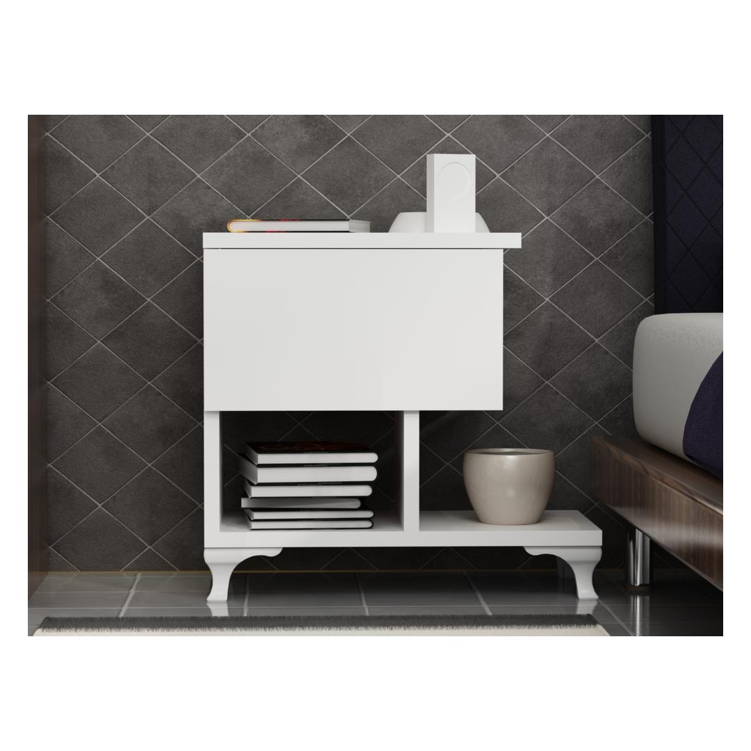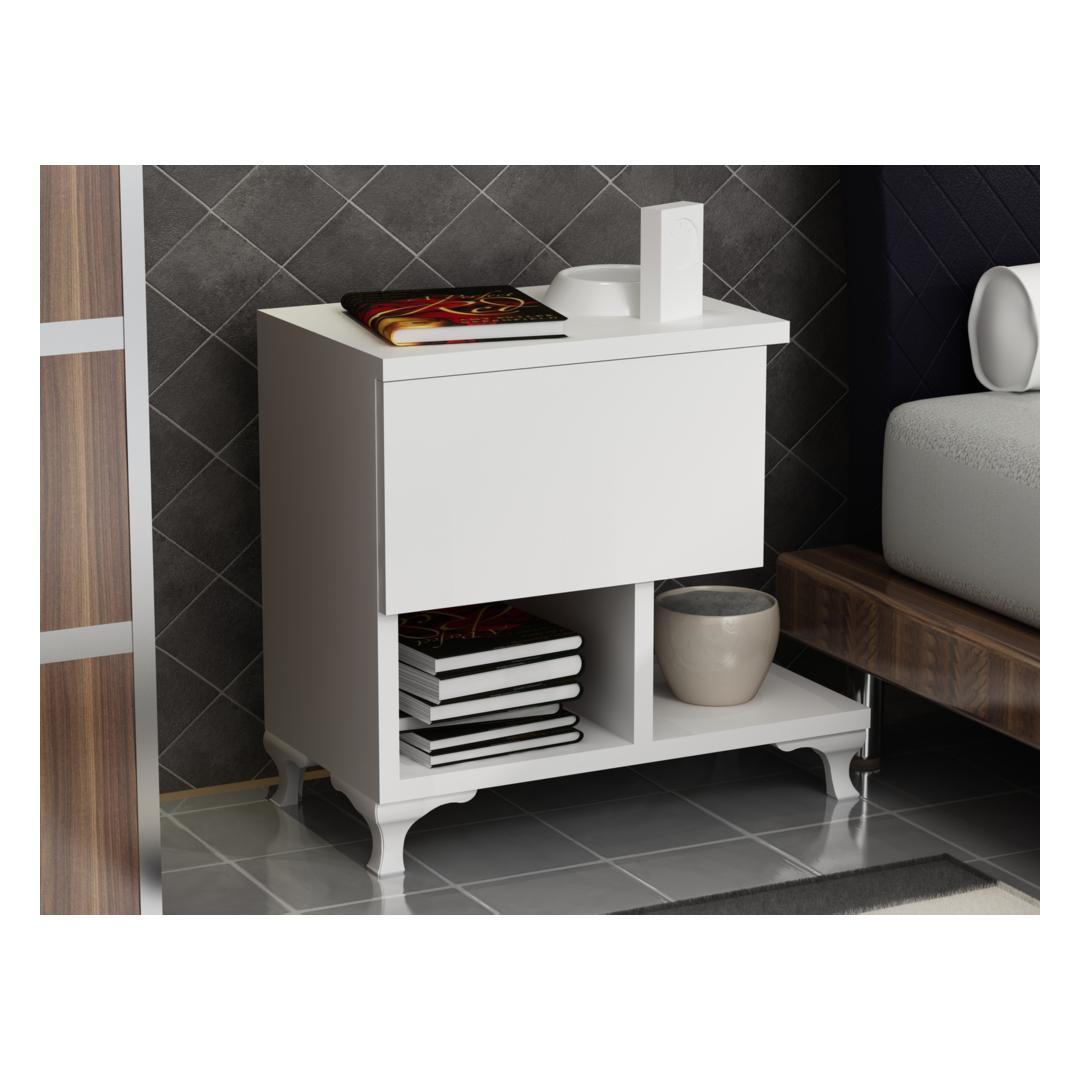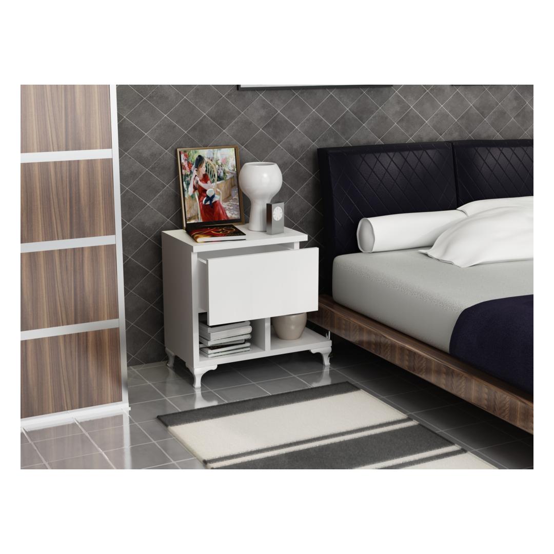 This nightstand is not only aesthetically pleasing but also highly versatile. It can be easily fixed to the wall, allowing you to maximize your floor space and create a seamless look in your bedroom. The plain, solid white color adds a touch of sophistication, effortlessly blending with any existing decor.