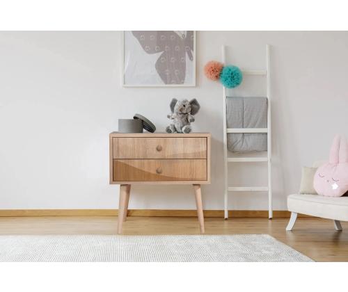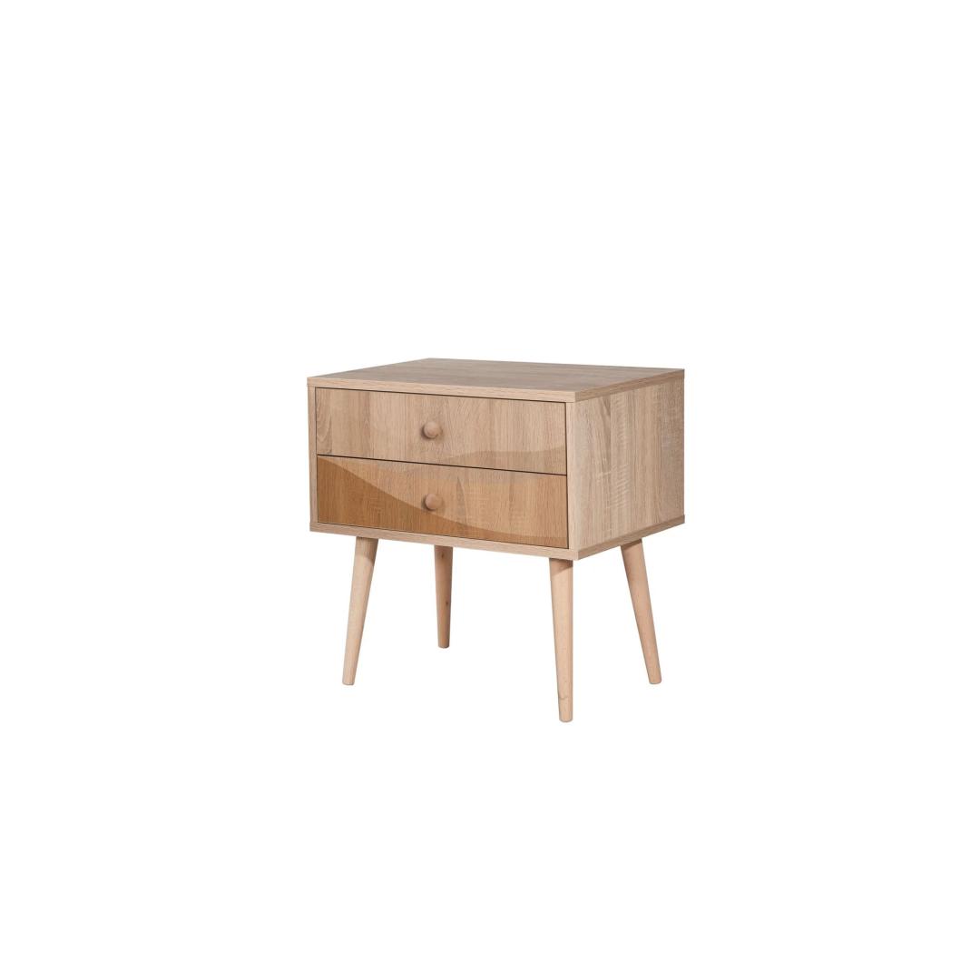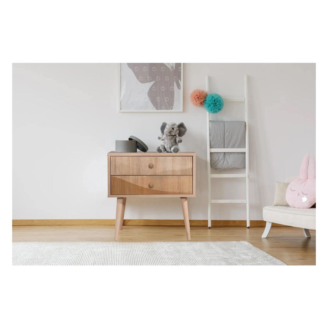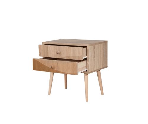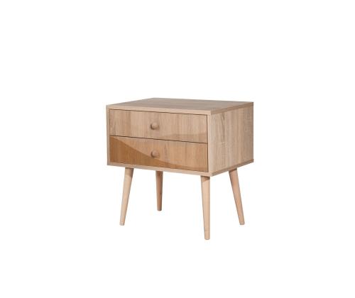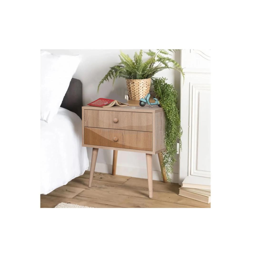 Create a cozy and inviting atmosphere in your bedroom with our modern and stylish nightstand. Crafted with 100% melamine coated particle board, this nightstand is built to last and withstand daily use. The wooden legs add a touch of elegance, while the UV digital printing ensures a vibrant and long-lasting design.