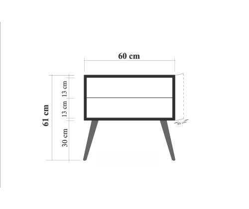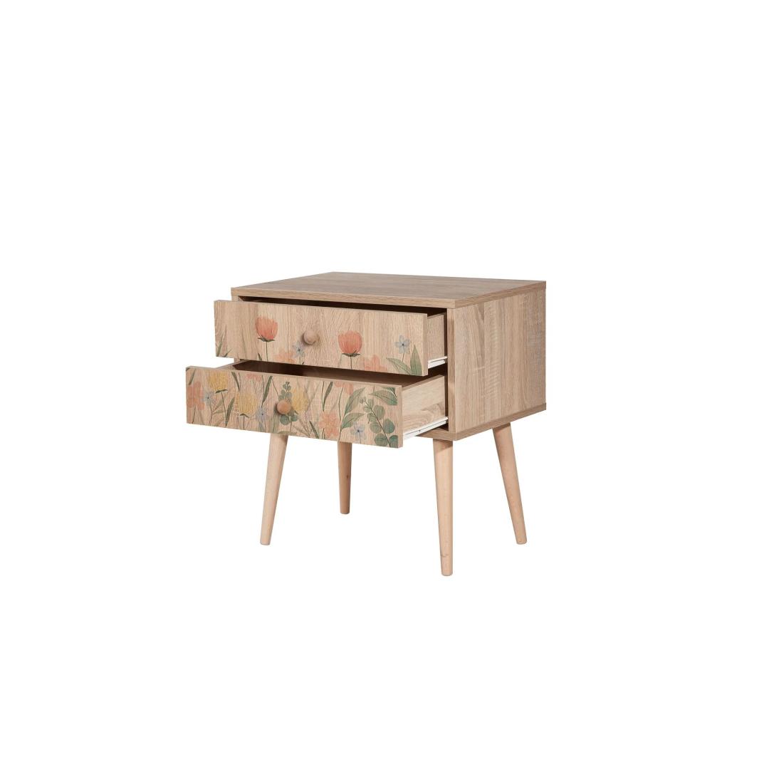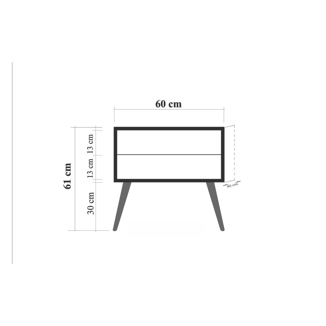 Crafted from 100% melamine coated particle board, this nightstand is not only durable but also easy to clean and maintain. The wooden legs add a touch of warmth and sophistication, making it a perfect addition to any bedroom decor.
