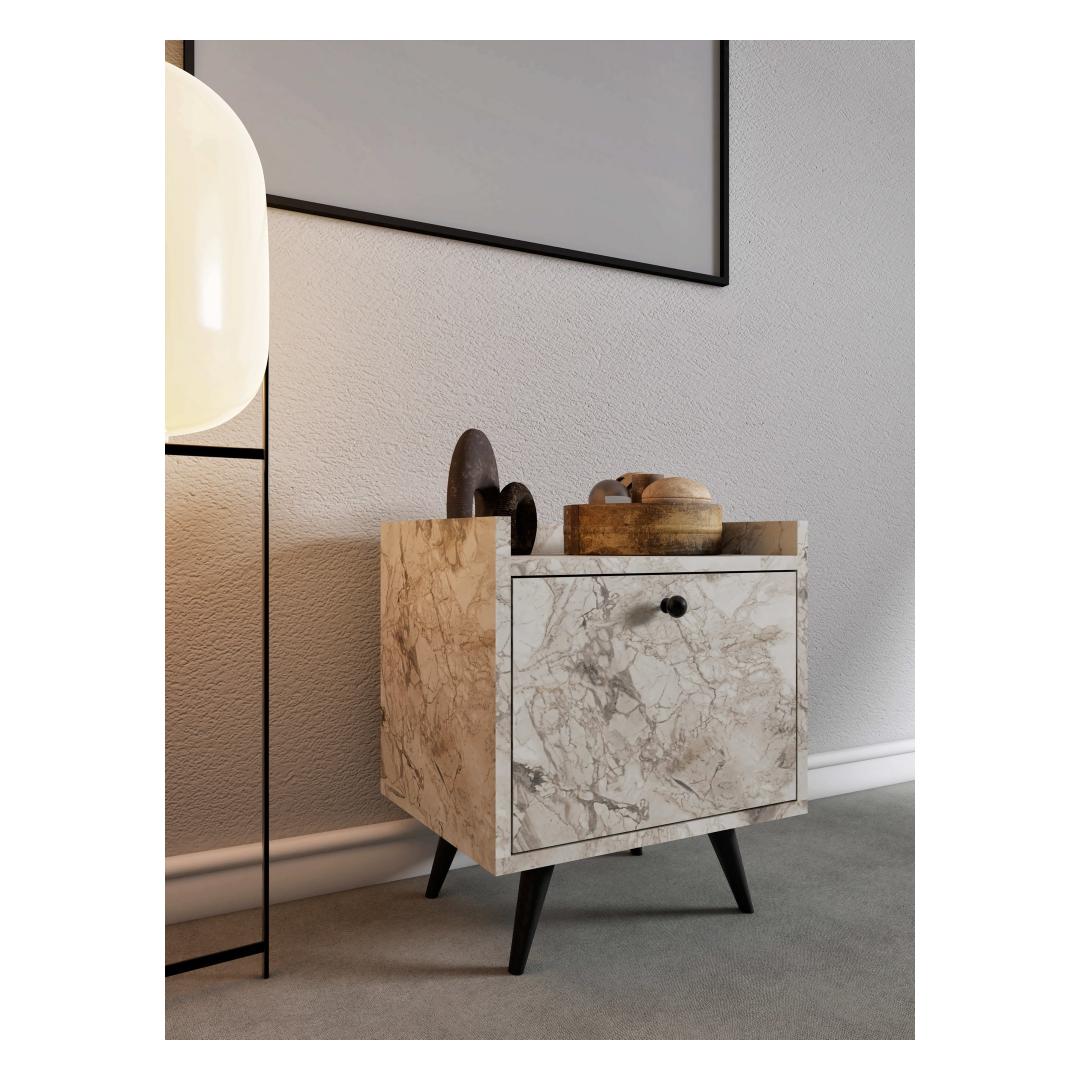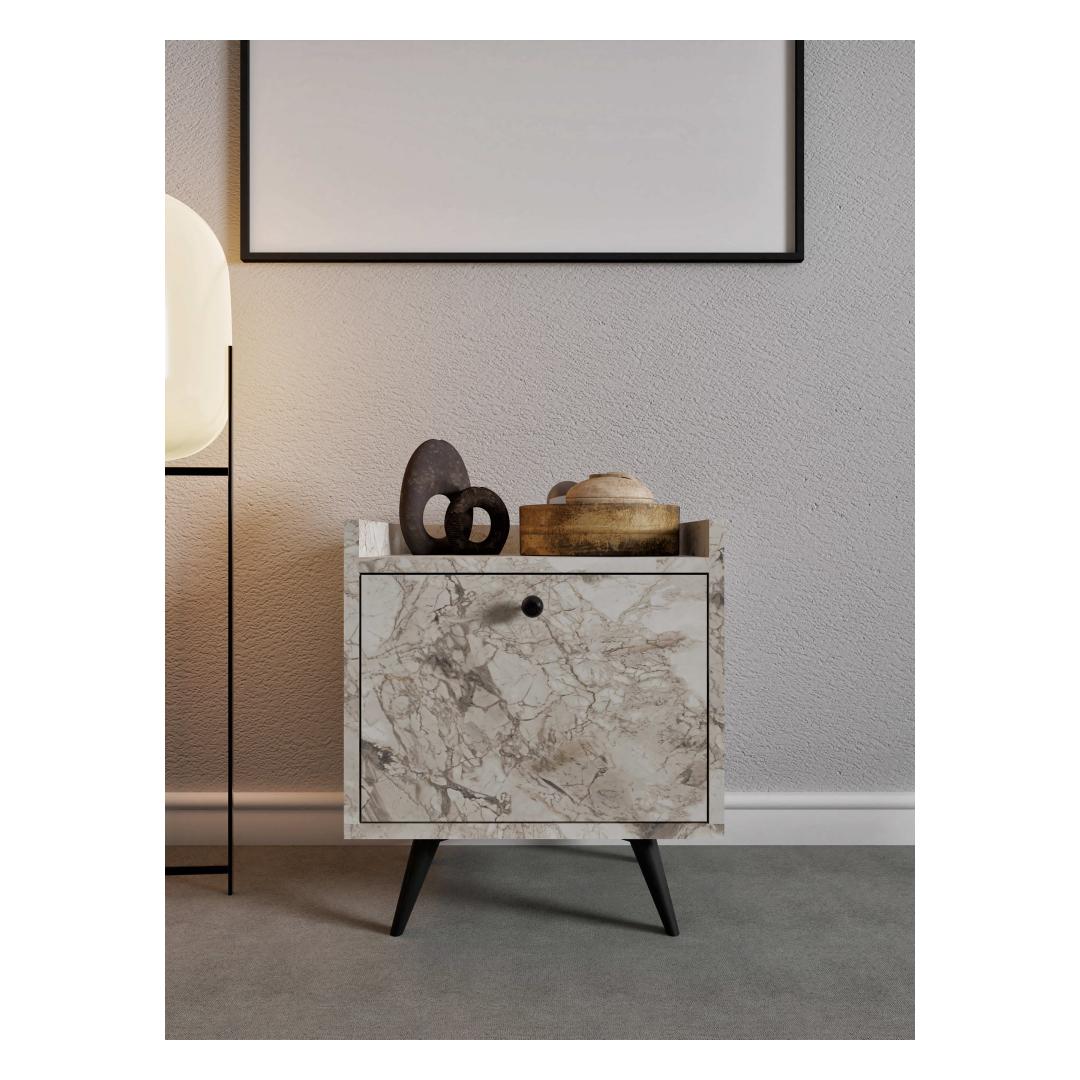 Say goodbye to boring and mundane nightstands and say hello to a piece that will truly make a statement in your bedroom. The Ephesus Marble Nightstand is designed to impress and will instantly elevate the overall look and feel of your space. Its unique marble finish adds a touch of luxury and glamour that is sure to catch the eye of anyone who enters your room.