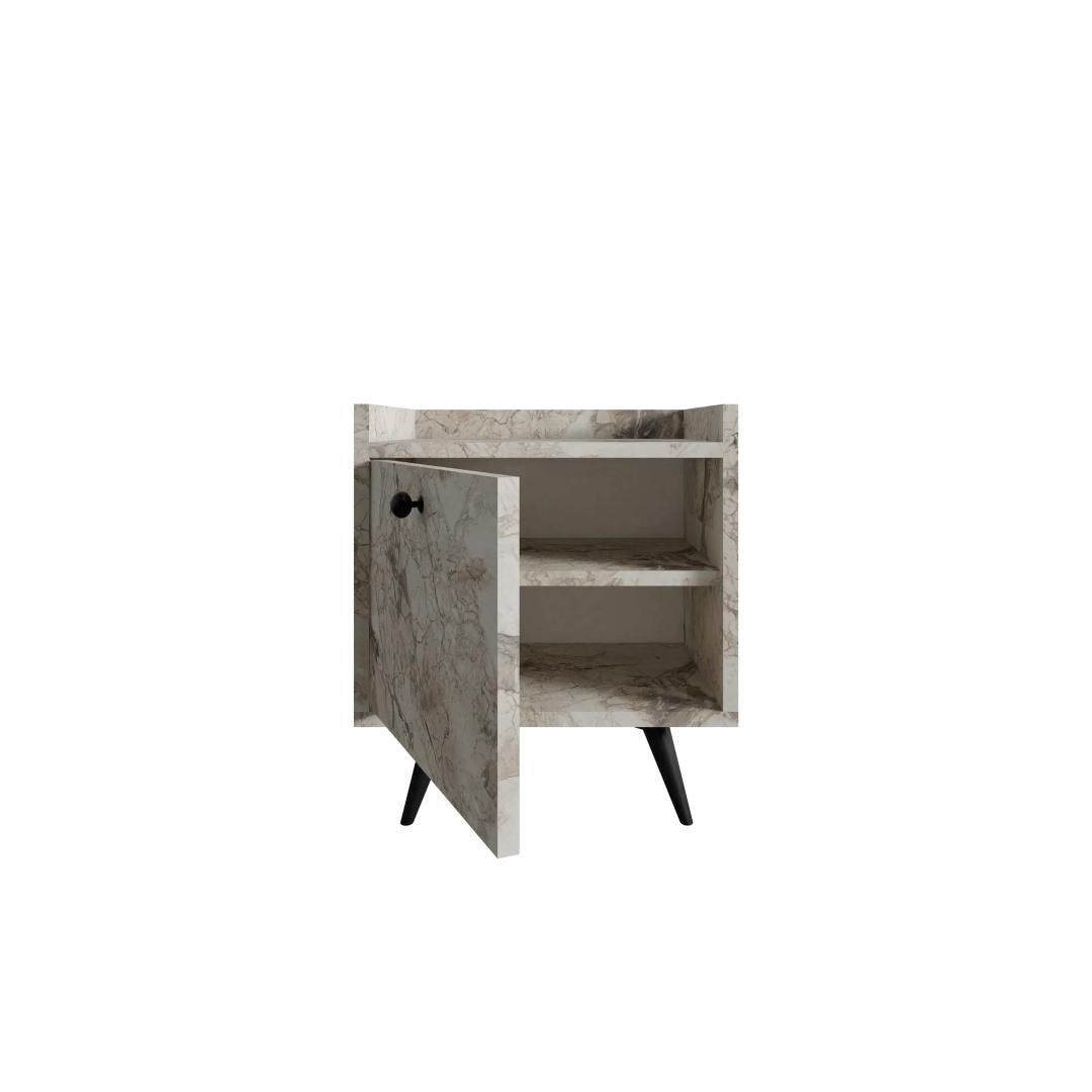 Not only is the Ephesus Marble Nightstand a stunning piece of furniture, but it is also highly functional. With numerous shelves, you'll have plenty of storage space to keep all your nighttime essentials within arm's reach. The PU leather handle adds a touch of elegance, while the wooden legs provide stability and durability.