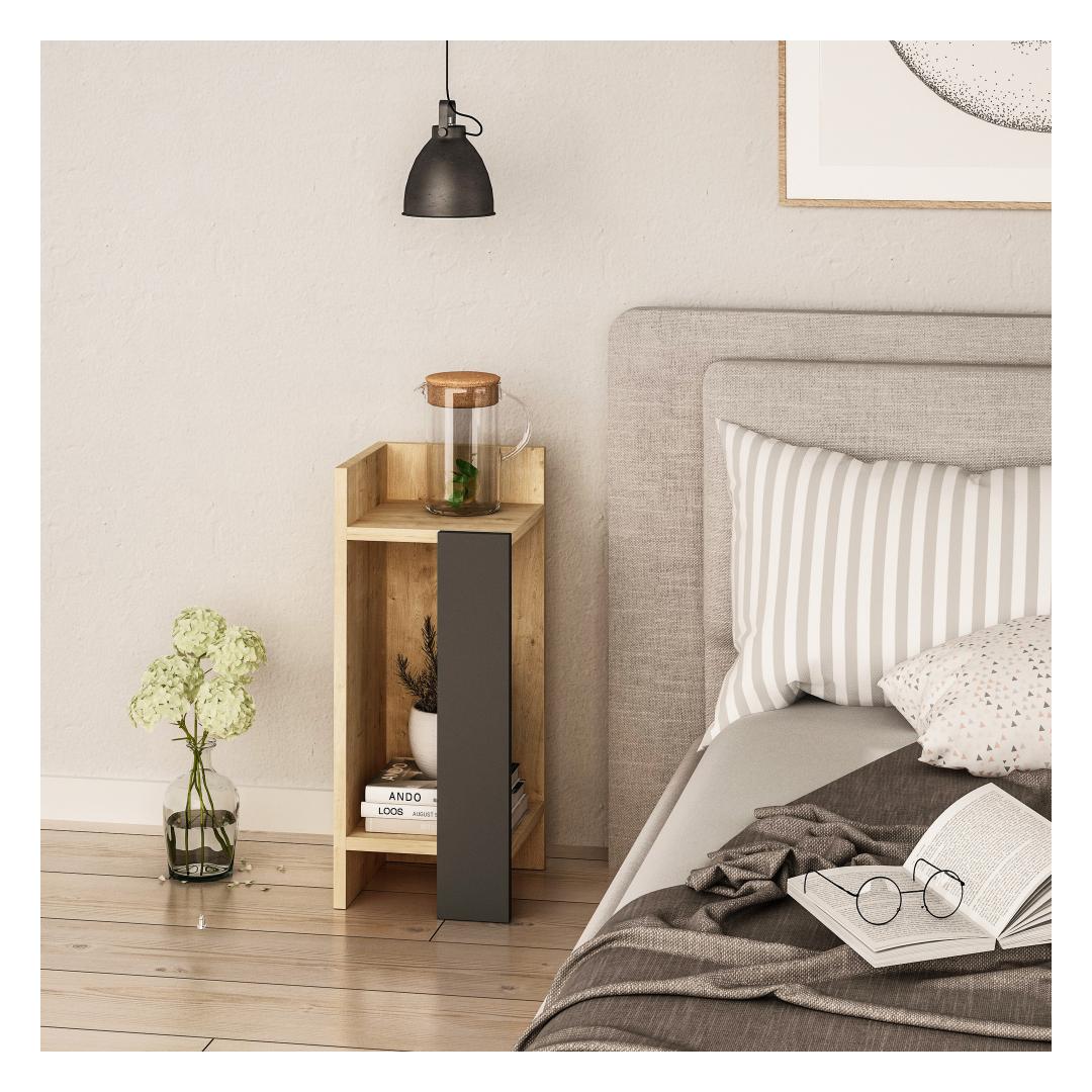 The combination of oak and anthracite colors in this nightstand creates a stunning visual contrast that adds a touch of sophistication to your bedroom. The solid color concept brings a sense of harmony and tranquility, while the modern novelty design adds a unique and contemporary flair.