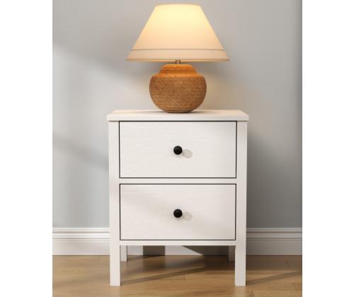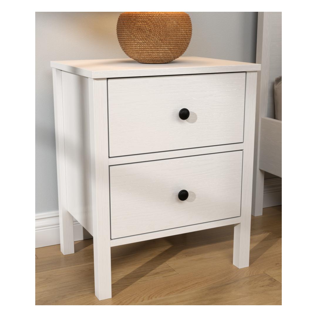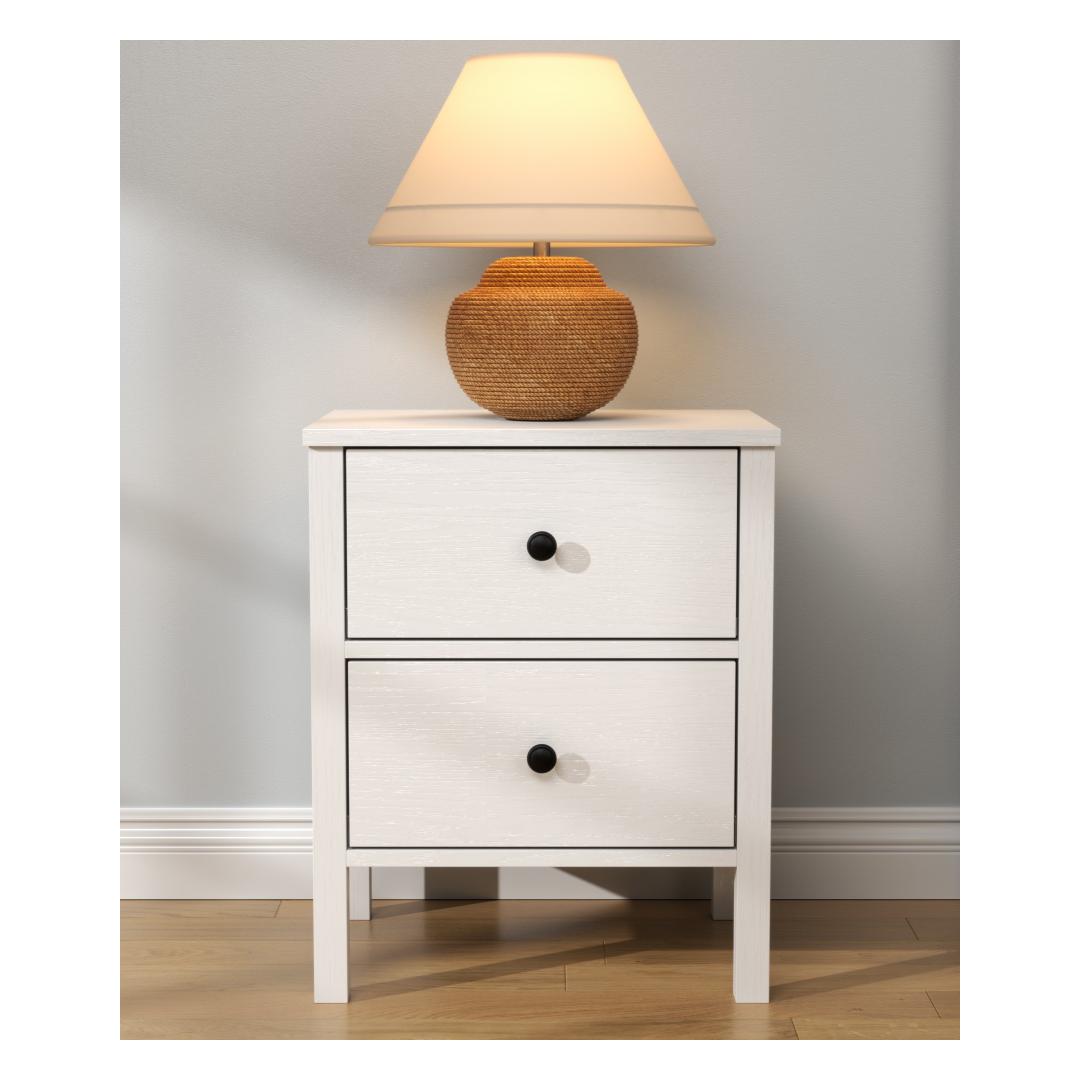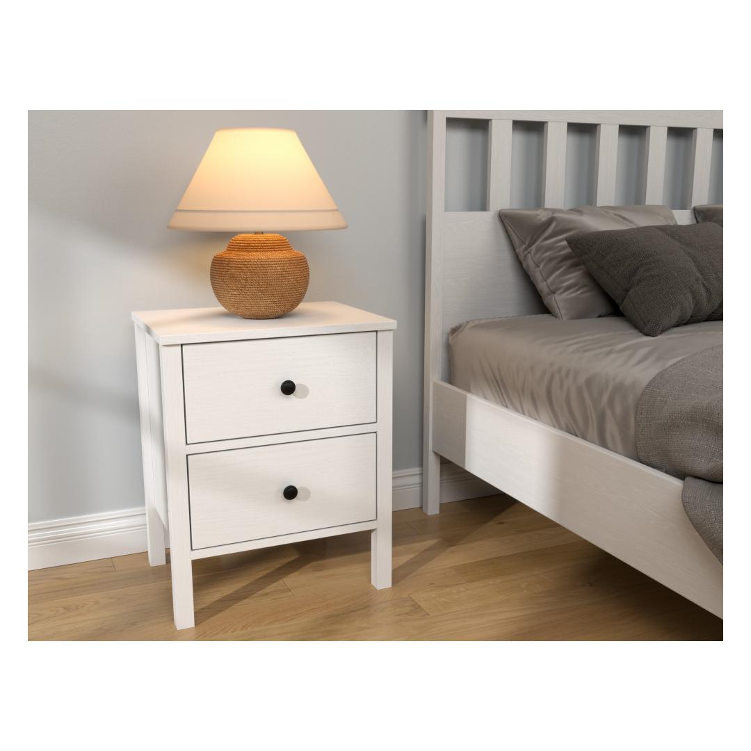 Transform your bedroom into a cozy and stylish sanctuary with our exquisite nightstand. Crafted from 100% melamine coated particle board, this nightstand is not only durable but also incredibly elegant. The sleek design and sophisticated color combination of wooden and white make it a versatile piece that will complement any decor style.