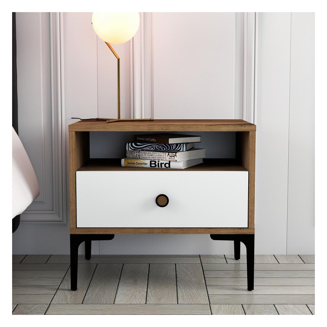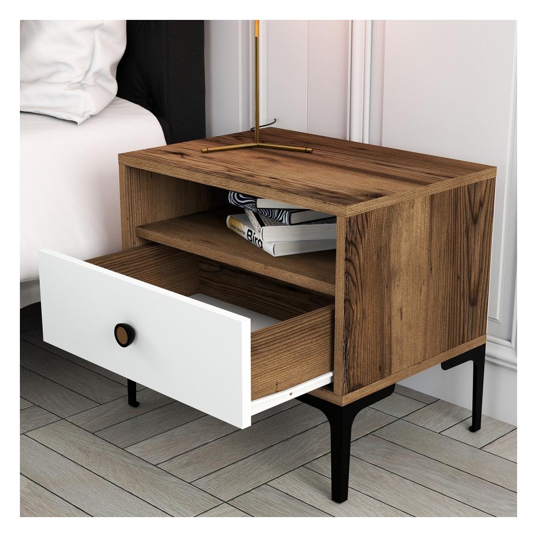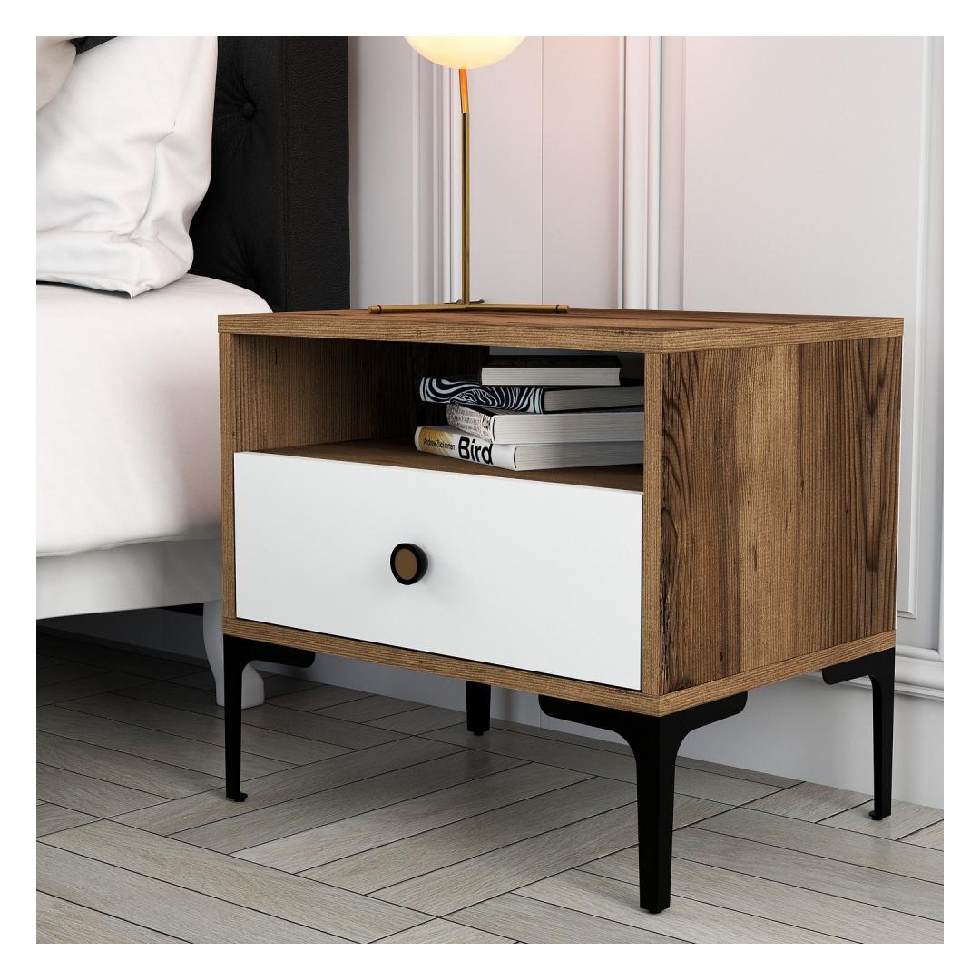Our nightstand comes in a stunning combination of walnut and white colors, adding a touch of sophistication and elegance to your bedroom decor. The contrasting colors create a modern and novelty concept, making it a statement piece that will surely impress your guests.