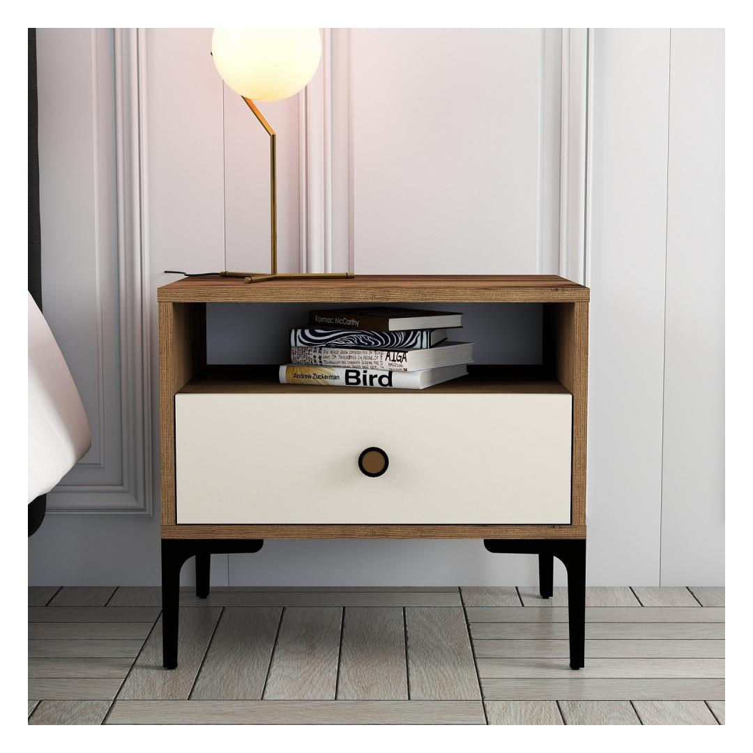 Imagine walking into your bedroom and being greeted by this stunning nightstand, its Walnut and Cream colors seamlessly blending with your existing decor. The 100% melamine coated particle board ensures durability and longevity, making this nightstand a timeless addition to your space.