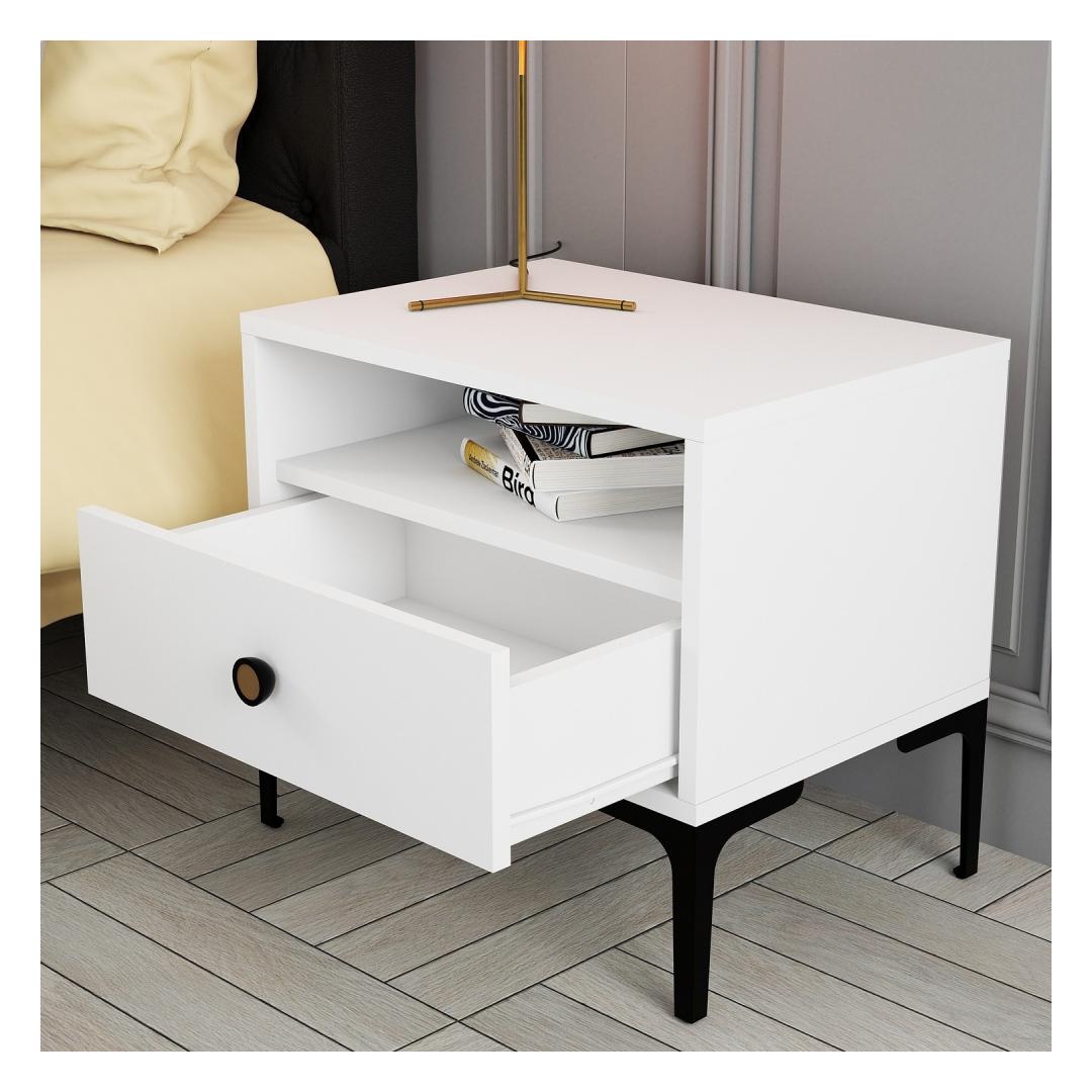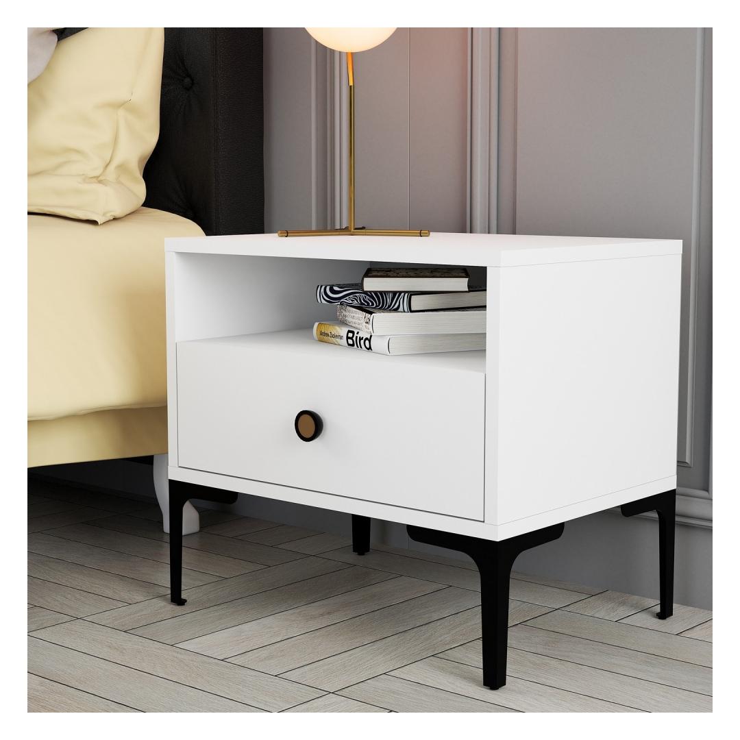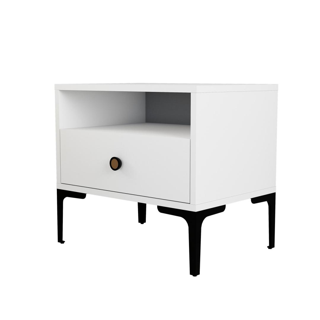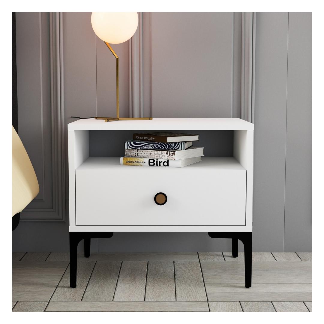The nightstand is designed in a stunning white color, adding a touch of elegance and sophistication to any bedroom decor. Its versatile color makes it easy to blend with existing furniture and accessories.