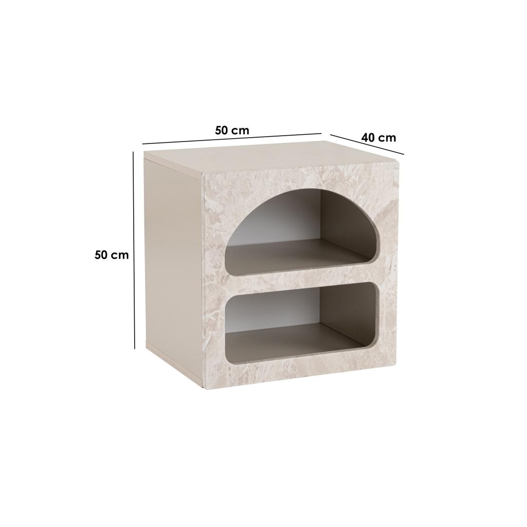 With a thickness of 18 cm and dimensions of 50 cm in width, 50 cm in height, and 40 cm in depth, this nightstand offers ample storage space for all your bedside essentials. The modern and novelty concept of the design makes it a unique and eye-catching addition to your bedroom decor.