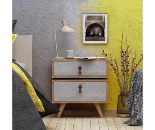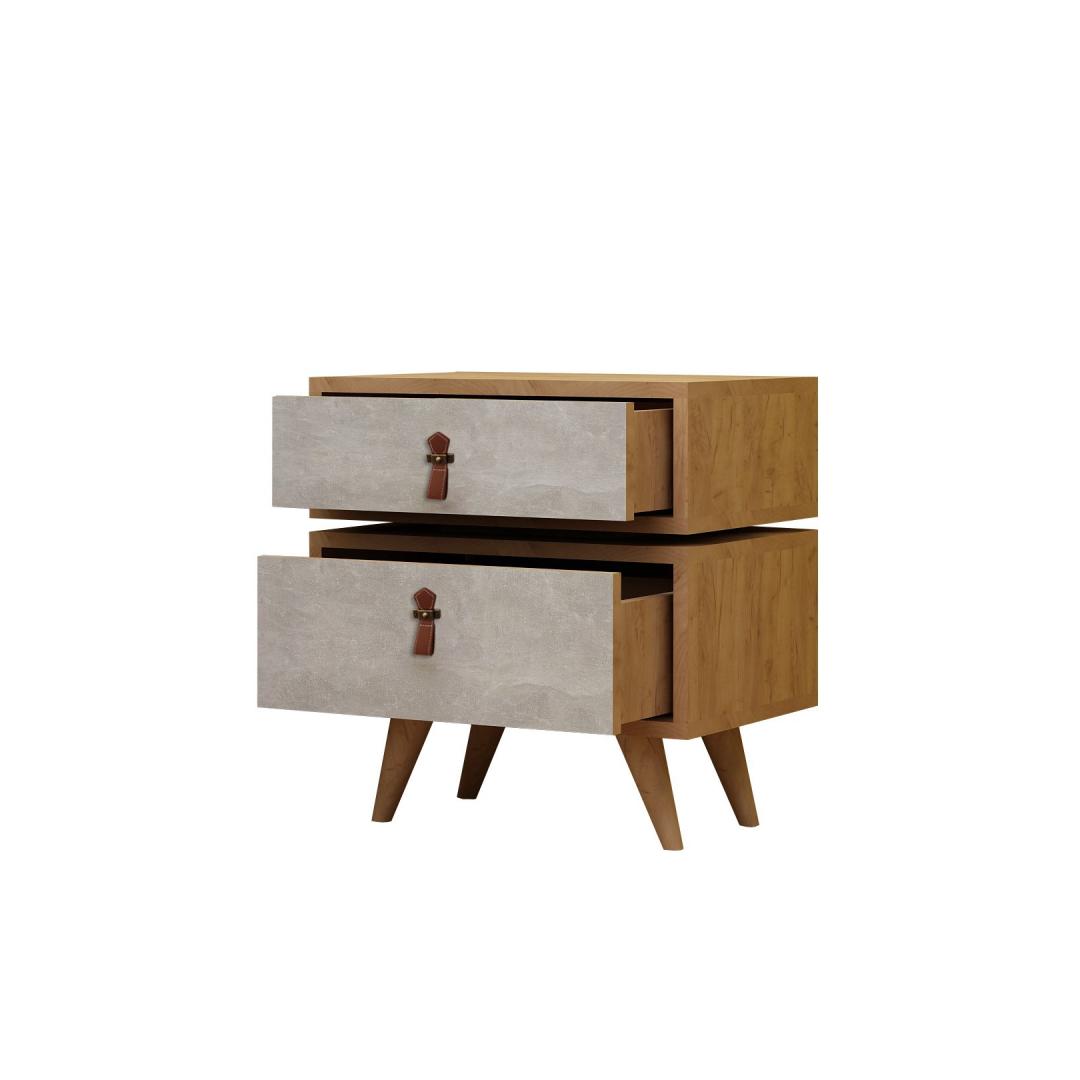 Crafted from 100% melamine coated particle board, our nightstand is built to last. The 18 mm thickness ensures durability and stability, allowing you to enjoy this piece for years to come. The PU leather handle adds a luxurious touch, while the wooden legs provide a sturdy and stylish base.
