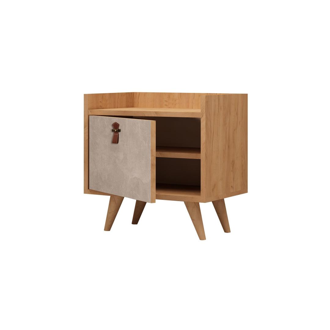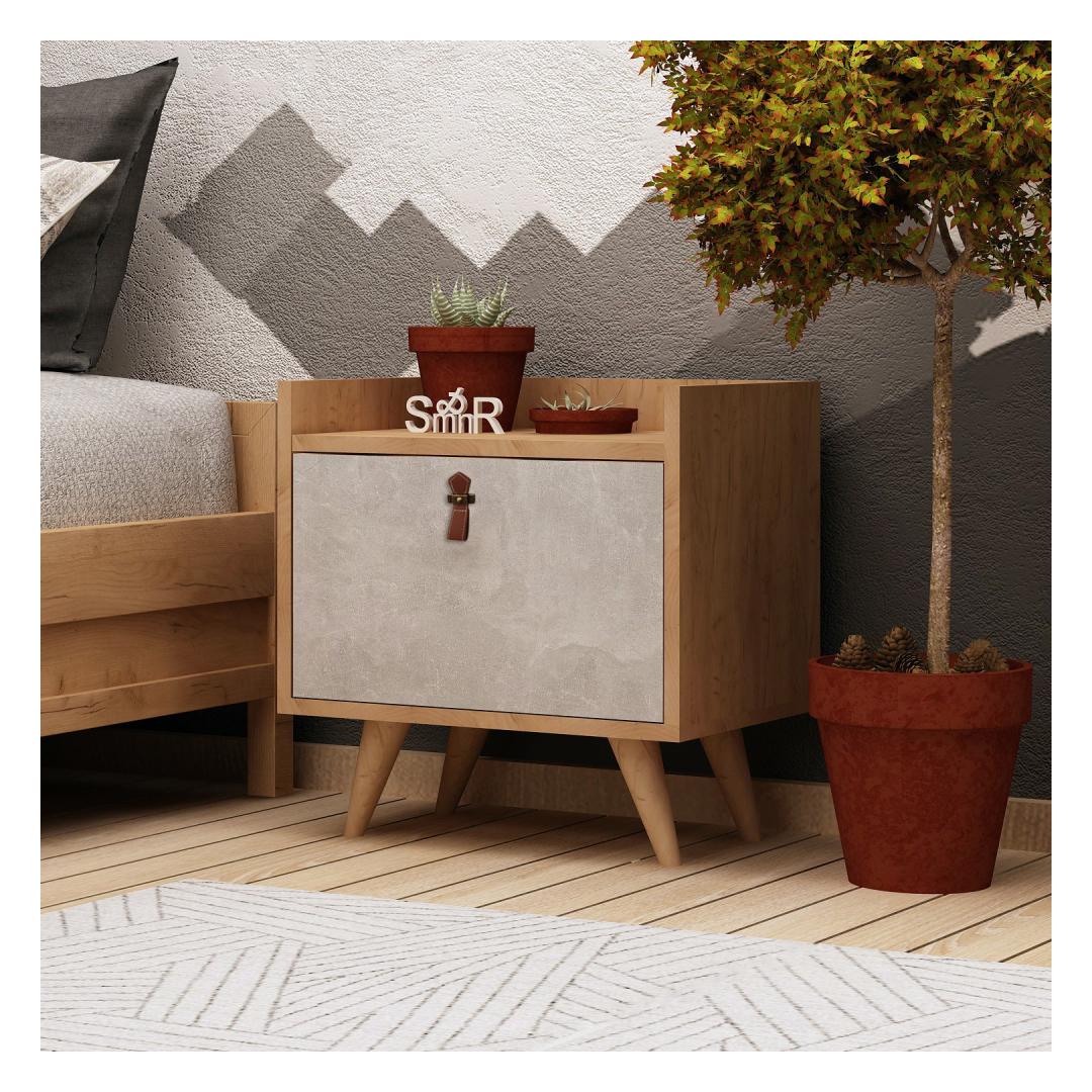 Embrace the modern and Scandinavian charm with this nightstand that effortlessly blends novelty and hotel-inspired design. Its sleek and minimalist concept will instantly enhance the overall ambiance of your bedroom, creating a serene and inviting atmosphere.