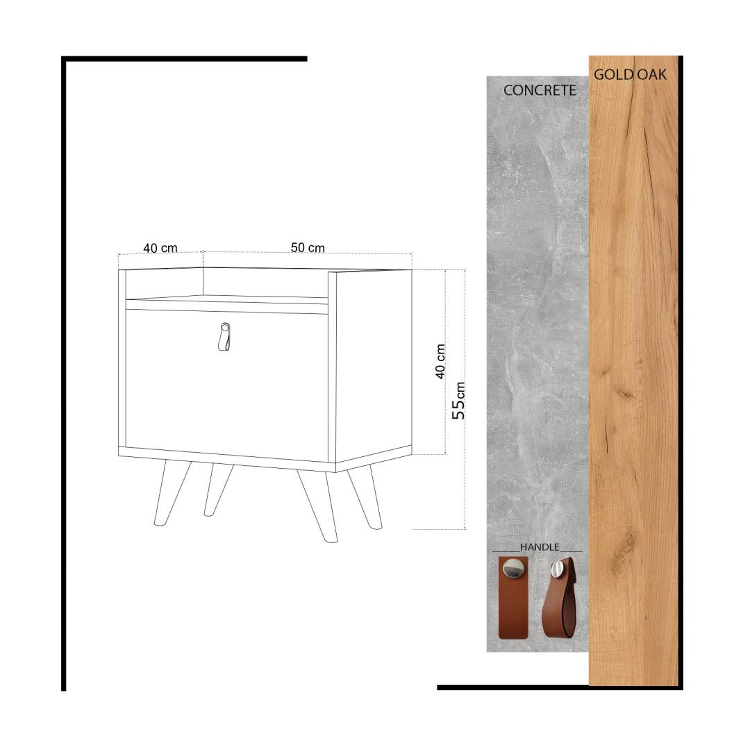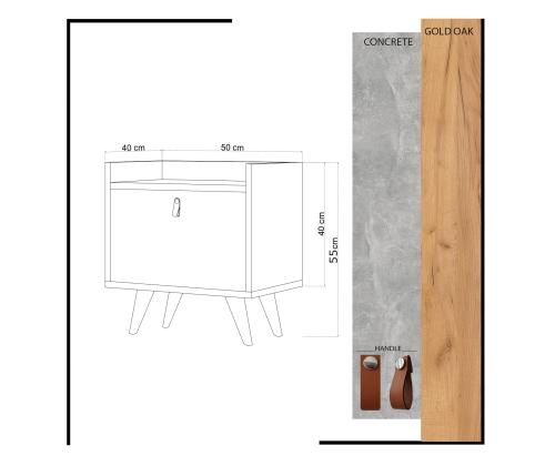 With a width of 50 cm, height of 55 cm, and depth of 40 cm, this nightstand offers ample storage space without compromising on style. The numerous shelves provide convenient storage for your nighttime essentials, keeping them within arm's reach. The combination of oak and white colors adds a modern and refreshing touch to any bedroom decor.