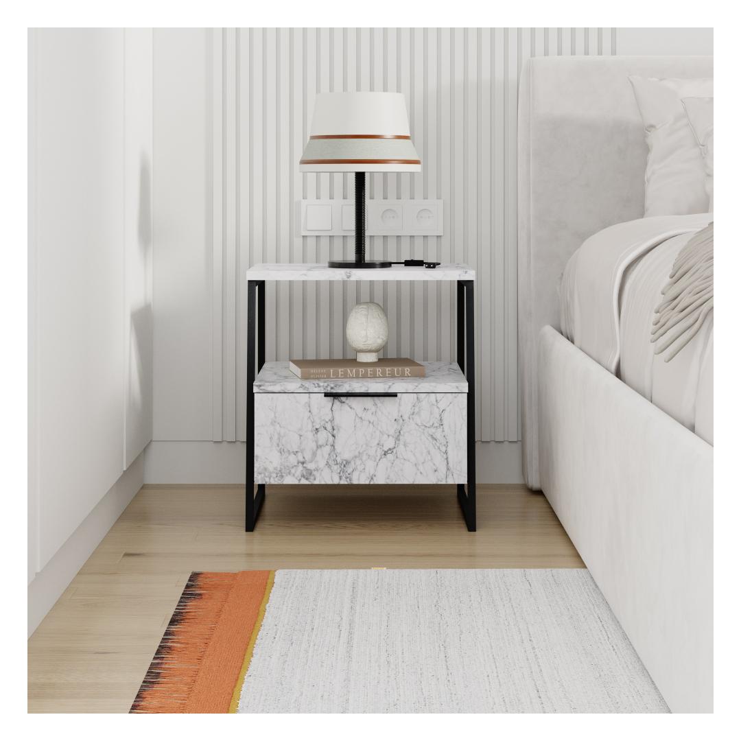 The sleek Carrara Marble finish of this nightstand exudes timeless elegance, making it the perfect addition to any modern or traditional bedroom decor. The clean lines and minimalist design will effortlessly elevate the style of your space, while providing essential storage for your bedside essentials.