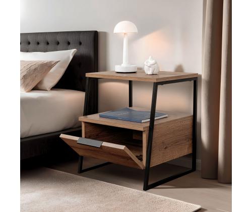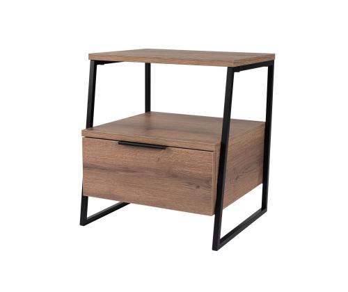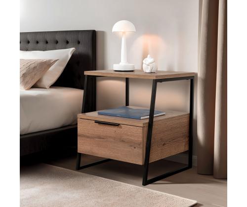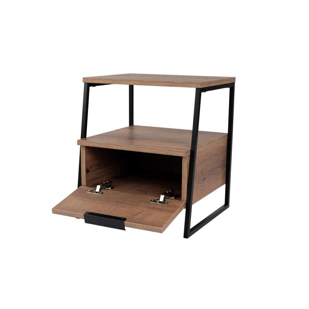Constructed from 100% melamine coated particle board, this nightstand is built to last. The 18 mm thickness ensures stability and durability, while the 45 cm width, 50 cm height, and 40 cm depth provide ample storage space. The shelf height of 19 cm allows you to organize your essentials with ease.