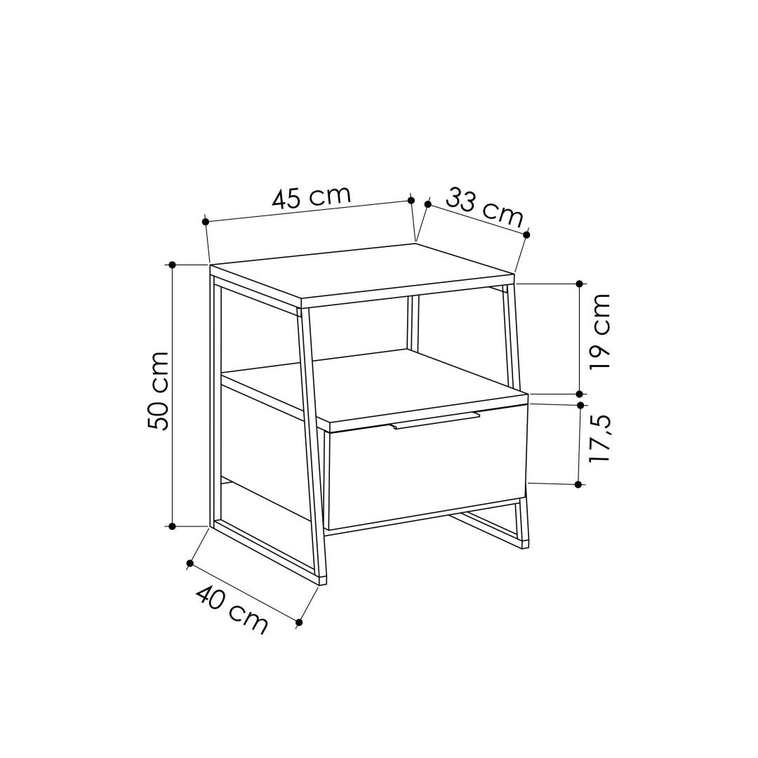 With a thickness of 18 mm and dimensions of 45 cm in width, 50 cm in height, and 40 cm in depth, this nightstand offers ample storage space for all your bedside essentials. The shelf height of 19 cm provides additional storage for books, magazines, or decorative items.