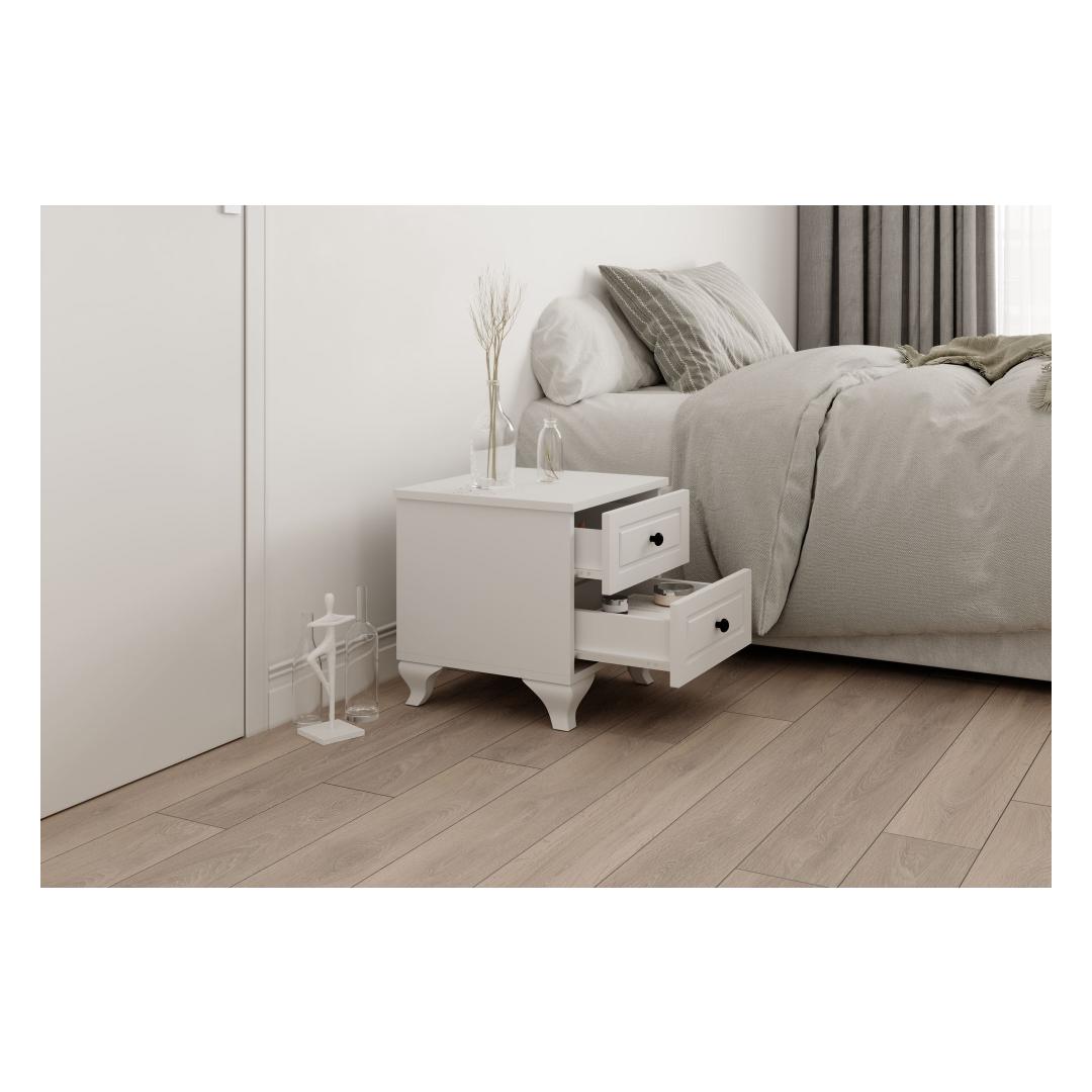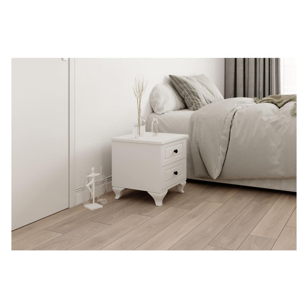 Muuda oma magamistuba hubaseks ja stiilseks pühamuks meie modernse ja elegantse öökapiga. See öökapp on valmistatud 100% melamiinkattega E1 kvaliteediga puitlaastplaadist, mis on mitte ainult vastupidav, vaid ka keskkonnasõbralik. 16 mm paksus tagab stabiilsuse ja pikaealisuse, samas kui MDF membraaniga kaetud uks lisab teie ruumile elegantsi.Elegantne disain teie magamistuppaSelle öökapiga matt valge värv lisab igasse magamistuba natuke rafineeritust. Metallist käepide ja 0,8 mm PVC servakate annavad sellele sujuva ja kaasaegse ilme, mis tõstab teie toa stiili.Mugav ja funktsionaalne45 cm laiuse, 45 cm kõrguse ja 40 cm sügavusega öökapp pakub piisavalt hoiuruumi kõigi teie öösel vajalike asjade jaoks. Lihtne kokkupanek Minifix süsteemiga muudab selle kokku panemise lihtsaks, nii et saate oma uut öökappi nautida kiiresti.Tehnilised andmed:Materjal: 100% melamiinkattega E1 kvaliteediga puitlaastplaatPaksus: 16 mmMDF (18 mm) membraaniga kaetud uksMetallist käepide0,8 mm PVC servakateLihtne kokkupanek Minifix süsteemigaMõõdud: Laius 45 cm, Kõrgus 45 cm, Sügavus 40 cmVärv: Matt valge Värv: Matte White