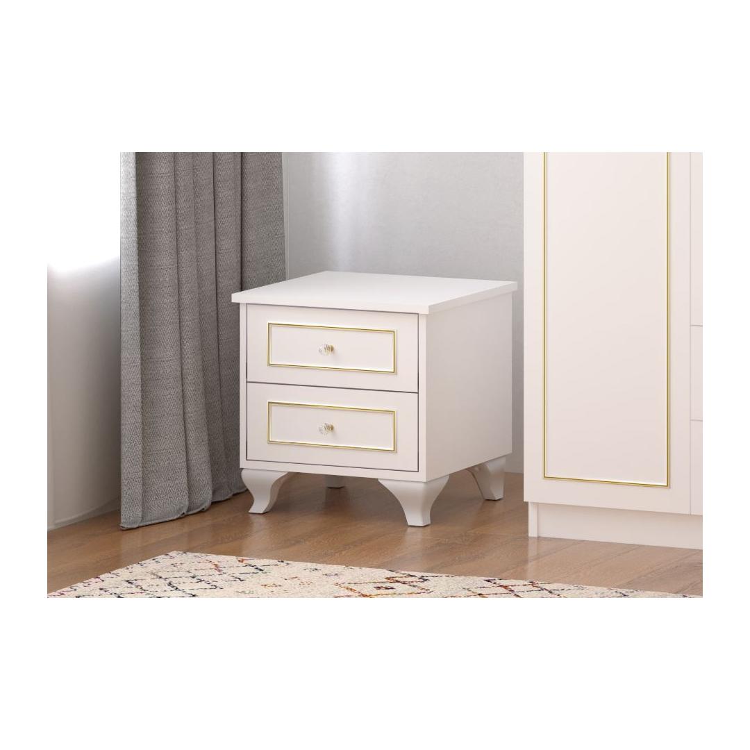 Muuda oma magamistuba hubaseks pühamuks meie stiilse ja modernse öökapiga. 100% melamiinkattega E1 kvaliteediga puitlaastplaadist valmistatud öökapp on mitte ainult stiilne, vaid ka vastupidav ja pikaealine. 0,8 mm PVC servakaitse lisab disainile elegantsi, muutes selle ideaalseks lisandiks igasse magamistoa sisustusse.Elegantne disain teie magamistuppaSelle öökapiga matt valge värv lisab teie magamistuppa elegantsi, luues rahuliku ja vaikse atmosfääri hea une jaoks. Kompaktne suurus 45 cm lai, 45 cm kõrge ja 40 cm sügav teeb sellest ideaalse lahenduse väikestesse ruumidesse, samas pakkudes piisavalt hoiuruumi teie ööriiete jaoks.Lihtne kokkupanek teie mugavuse huvidesLihtsa kokkupaneku abil Minifix süsteemiga saate selle öökapiga kiiresti valmis, võimaldades teil kohe nautida selle ilu ja funktsionaalsust. Ütle hüvasti keeruliste juhiste ja frustratsiooni tekitavate kokkupanekuprotsessidega - see öökapp on loodud teie mugavuse huvides.Parandage oma magamistuba meie stiilse ja funktsionaalse öökapiga juba täna ning kogege, kui suurt erinevust see teie igapäevases rutiinis teeb.Tehnilised andmed:Materjal: 100% melamiinkattega E1 kvaliteediga puitlaastplaatPaksus: 16 mmServakaitse: 0,8 mm PVCKokkupanek: Lihtne kokkupanek Minifix süsteemigaMõõtmed: Laius 45 cm x Kõrgus 45 cm x Sügavus 40 cmVärv: Matt valge Värv: Matte White