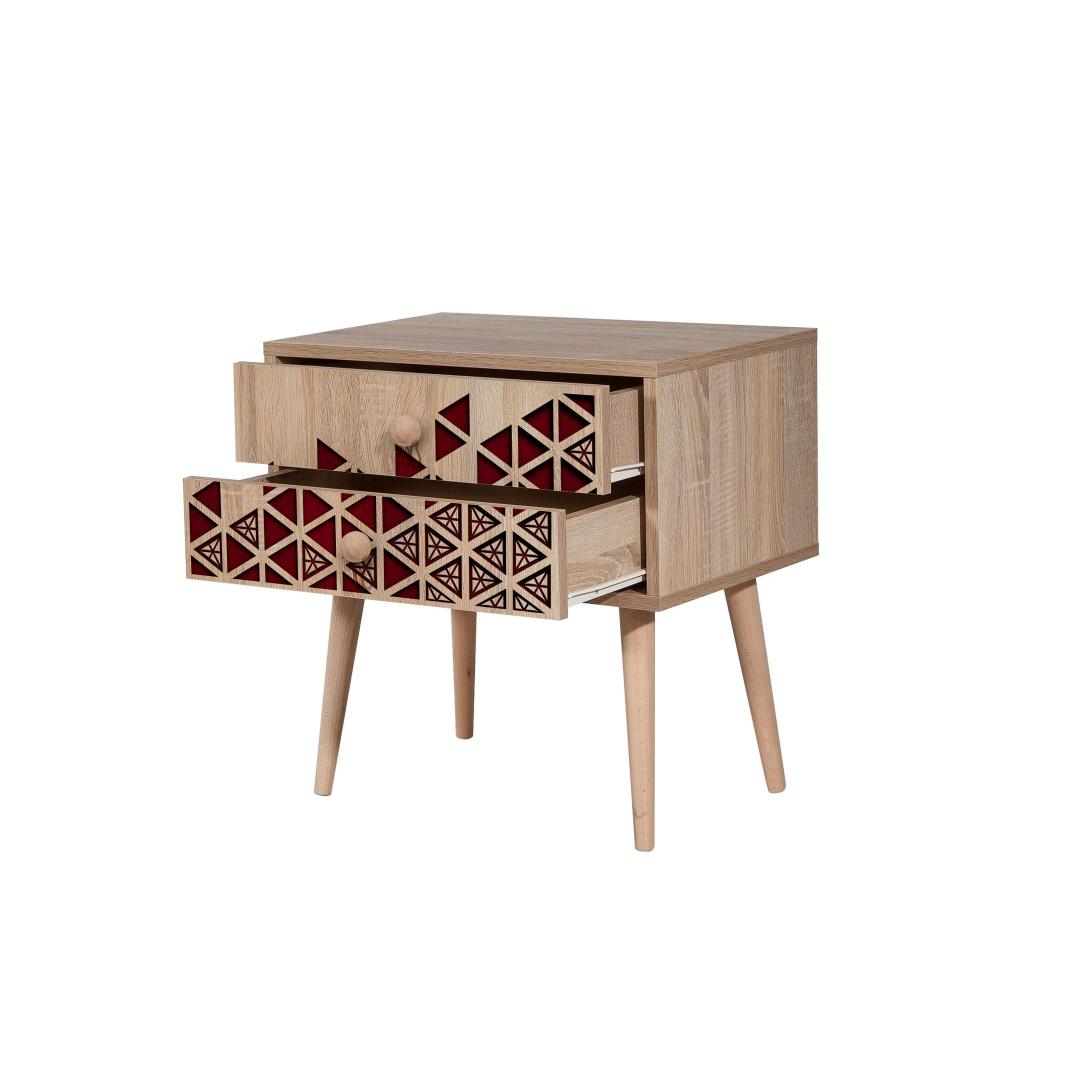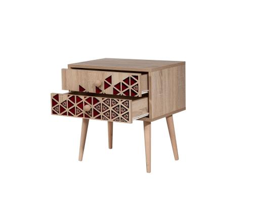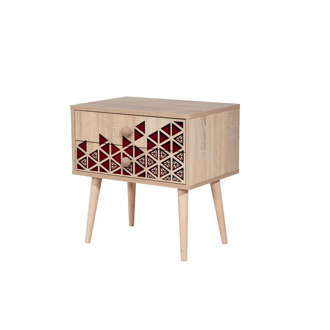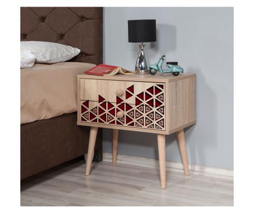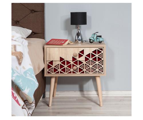 With its UV coating, our nightstand boasts a stunning Sonoma Oak color that effortlessly blends with any decor style. The abstract, modern concept of the design adds a touch of novelty and uniqueness to your bedroom. The two spacious drawers offer ample storage space, allowing you to keep your essentials organized and within reach.