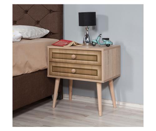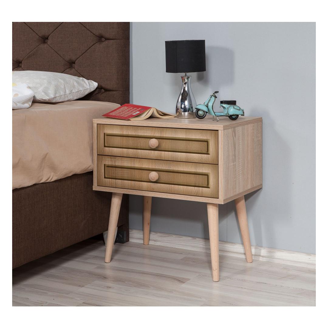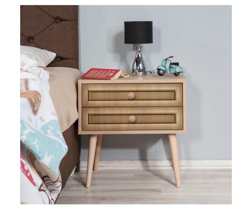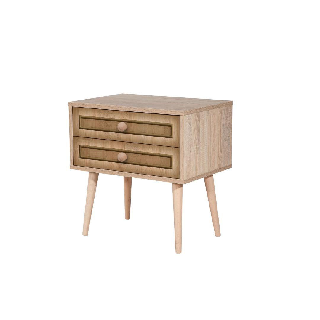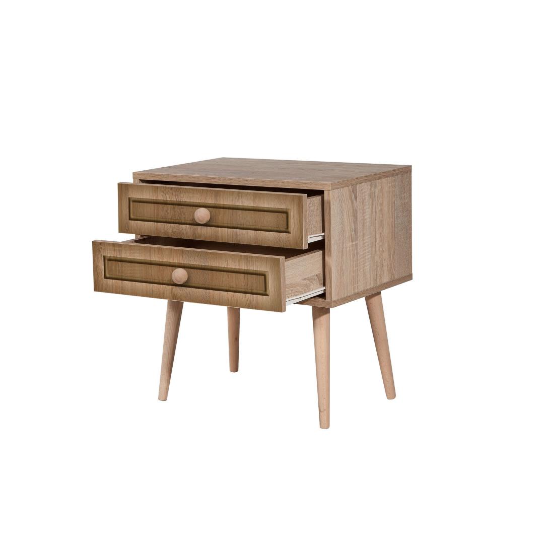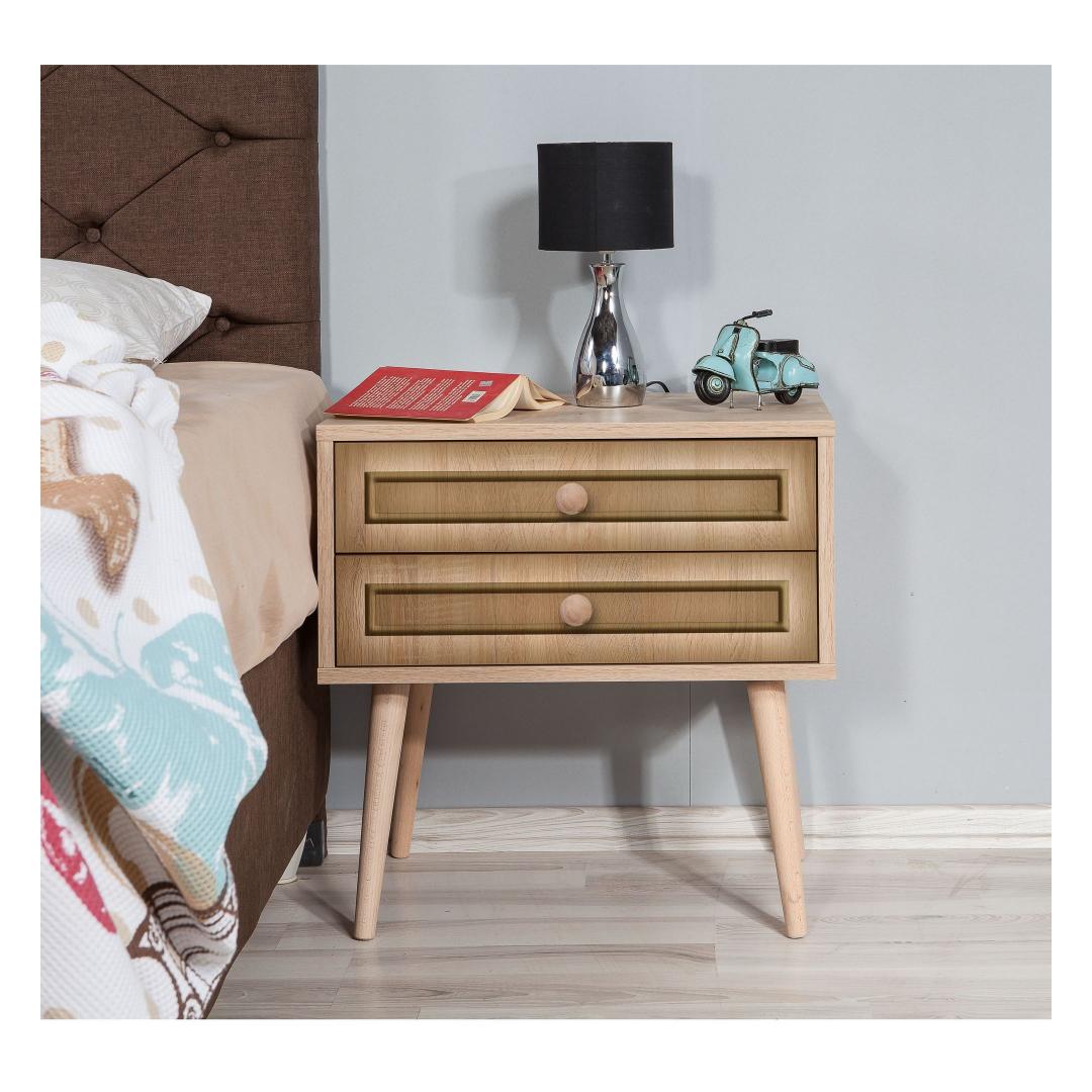 With two spacious drawers, our nightstand offers ample storage for all your essentials. The drawer height of 13cm allows you to neatly organize your belongings, keeping your bedroom clutter-free. The leg height of 30cm adds an airy feel to your space.