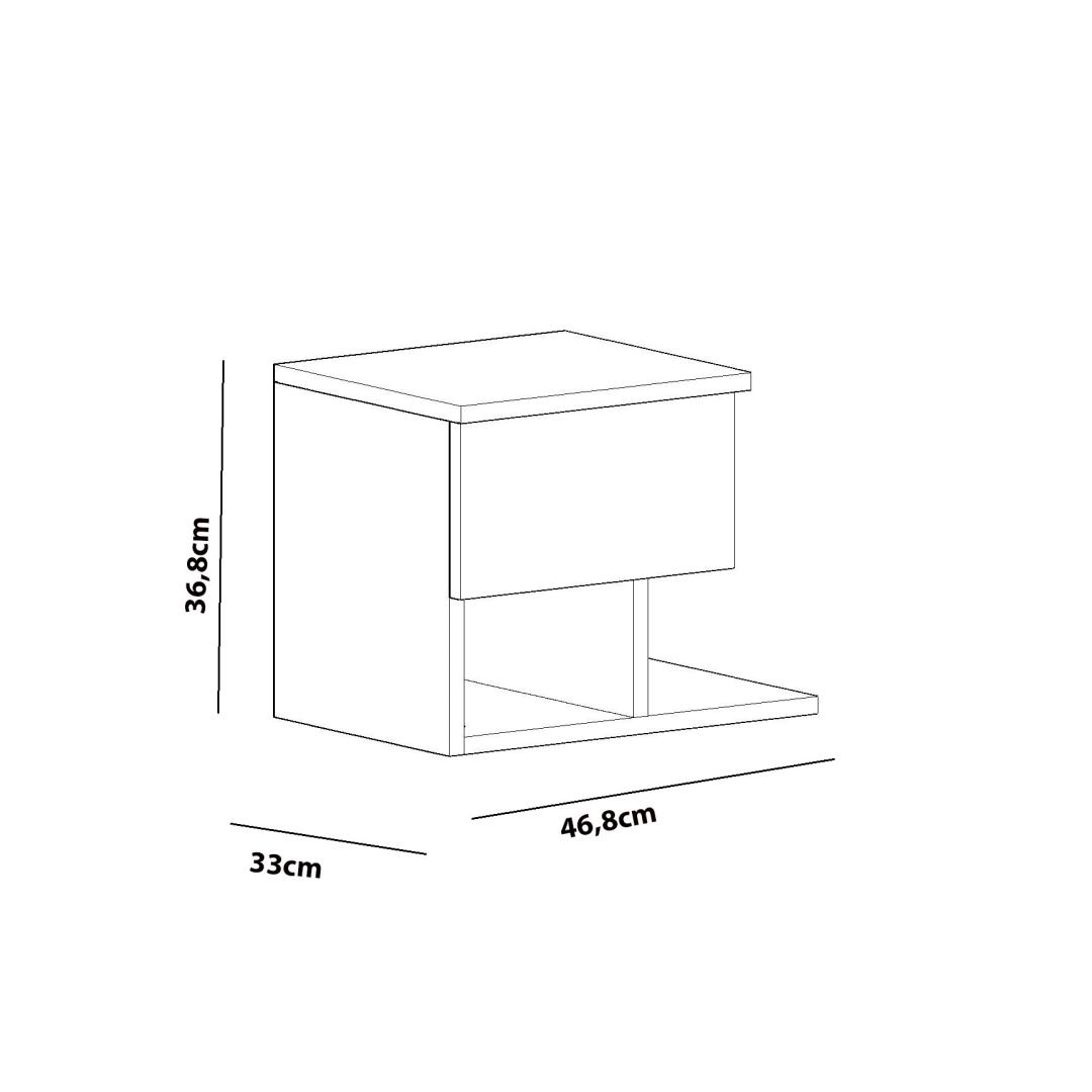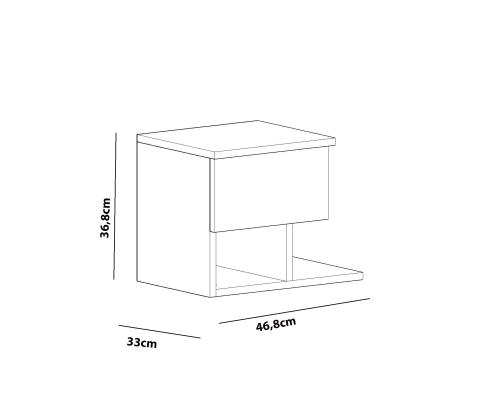 This nightstand can be easily fixed to the wall, providing additional stability and safety. Its compact dimensions of 46.8cm in width, 36.8cm in height, and 33cm in depth make it a perfect fit for any bedroom, regardless of size. The sleek and minimalist design adds a touch of sophistication to your space, while the white color effortlessly complements any existing decor.