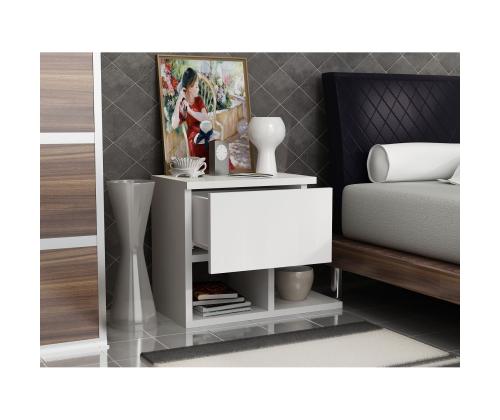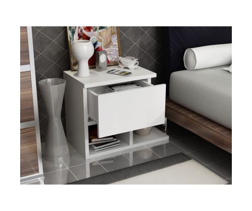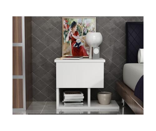 Enhance the ambiance of your bedroom with our exquisite nightstand. Crafted with utmost precision, this nightstand is designed to bring a touch of elegance and sophistication to your living space. Its solid white color and modern design make it a perfect addition to any contemporary or Scandinavian-themed room.