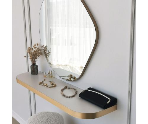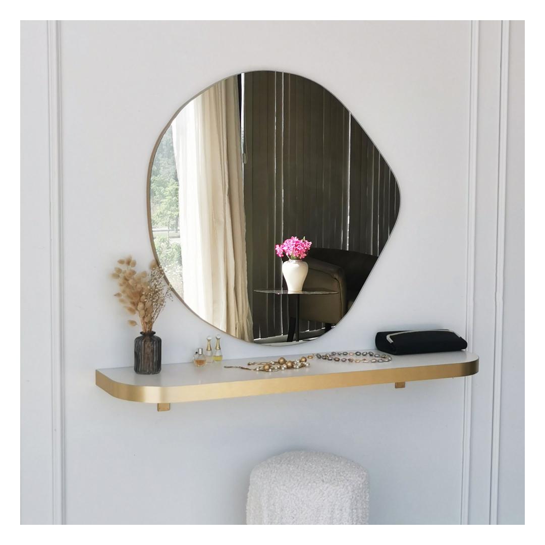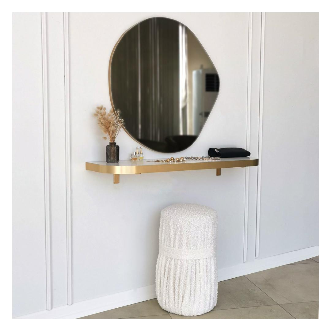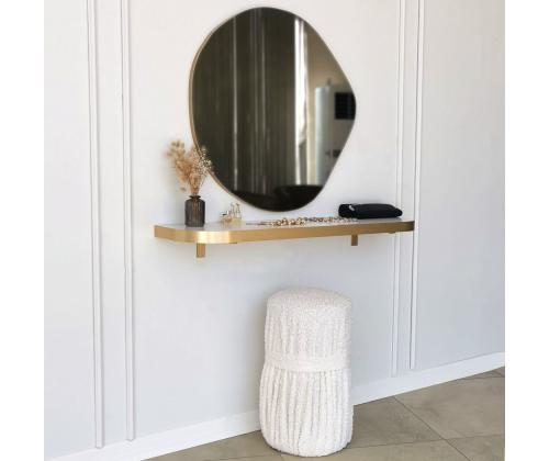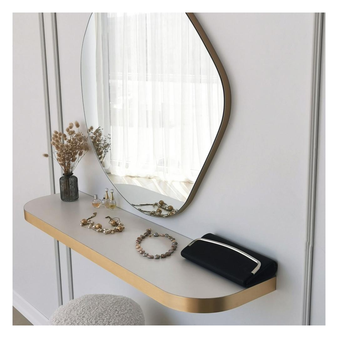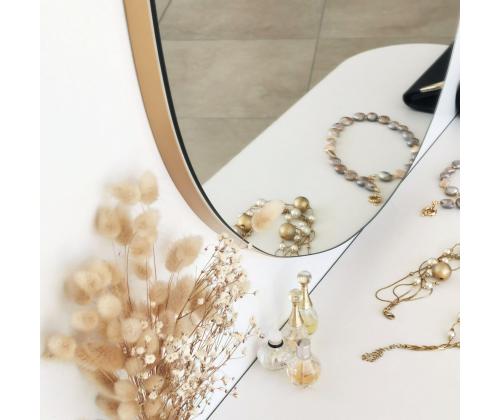 Tutvustame meie peene kuldse peegli, tõelise meistriteose, mis tõstab koheselt mis tahes ruumi atmosfääri. Vabastage oma loomingulisus selle moodsa ja uudse peegliga, mis on loodud kütkestama ja inspireerima. Selle elegantne ja minimalistlik disain sobib vaevata kokku mis tahes interjööri stiiliga, olgu see siis kaasaegne hotell või hubane skandinaavia inspiratsiooniga kodu. Suurendage oma ruumi täiuslike mõõtmetega, mille laius on 70 cm ja kõrgus 67 cm, pakkudes suurejoonelist peegeldust, mis muudab iga ruumi avaramaks ja kutsuvamaks. Seda mitmekülgset ja praktilist peeglit saab hõlpsasti seinale kinnitada, mis võimaldab teil kohandada selle asendit vastavalt oma eelistustele. Olenemata sellest, kas riputate selle horisontaalselt või vertikaalselt, selle reguleeritav funktsioon tagab teie peegelduse jaoks täiusliku nurga. See peegel on valmistatud kõige kvaliteetsematest materjalidest, see peegel on 100% melamiiniga kaetud puitlaastplaadist, mis tagab vastupidavuse ja pikaealisuse. Selle 18 mm paksus lisab tugevust ja soliidsust, muutes selle usaldusväärseks ja kauakestvaks täienduseks teie ruumile. Ärge rahulduge tavaliste peeglitega, kui teil on võimalik saada elegantsi ja võlu kiirgav väljendusrikas ese. Tõstke oma sisekujundust ja nautige meie kuldse peegli ilu juba täna. Värv: Gold