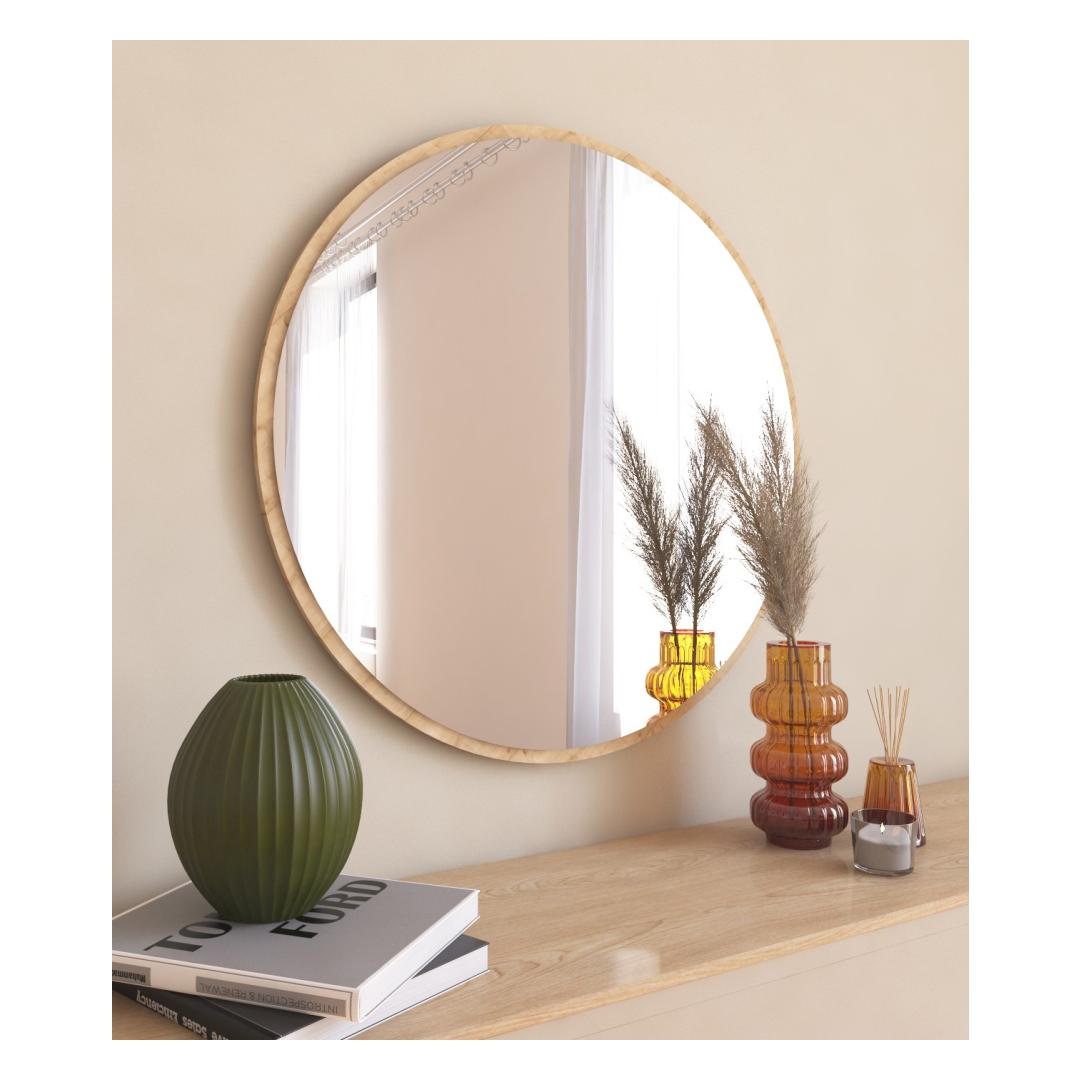 Paranna tilojasi Mirror Mirror -peilillä Muunna olohuoneesi upealla pyöreällä peilillä, joka on suunniteltu lisäämään eleganssia ja hienostuneisuutta mihin tahansa huoneeseen.100100 % MDF -Ga käsityönä valmistettu peili ei ole ainoastaan visuaalisesti houkutteleva, vaan myös kestävä, varmistaen, että se kestää ajan testin. heijastaa tyyliäsi pyöreällä peilillä Tämän peilin pyöreä muoto lisää ainutlaatuisen ja tyylikkään kosketuksen sisustukseen, joten se on täydellinen lisä mihin tahansa nykyaikaiseen tai moderniin ympäristöön.Sen tyylikäs muotoilu täydentää vaivattomasti mitä tahansa värimaailmaa, mikä tekee siitä monipuolisen kappaleen, joka voidaan helposti liittää olemassa olevaan sisustukseen. Koe ympäristöystävällisen flotaal-E-peilin kauneus Peilimme on ympäristöystävällinen flotaal-E-peili, joka paitsi parantaa visuaalista houkuttelevuutta, myös edistää kestävää ympäristöä.Valitsemalla tämän peilin teet tietoisen valinnan tukea ympäristöystävällisiä tuotteita tinkimättä tyylistä tai laadusta. Helppo asentaa kätevästi Tämä peili voidaan helposti asentaa seinälle, jolloin voit vaivattomasti luoda keskipisteen mihin tahansa huoneeseen.Riippumatta siitä, haluatko ripustaa sen olohuoneeseen, makuuhuoneeseen tai eteiseen, tämä peili kohottaa heti tunnelmaa ja tekee vaikutuksen.Tekniset tiedot:Materiaali: 100 % MDFMuoto: pyöreäLeveys: 60 cmKorkeus: 60 cmSyvyys: 2,2 cmPEILIN TYYPPI: ekologinen flotaal-E-peiliKiinnitys: voidaan asentaa seinälleVäri: luonnonväri (s)Päivitä tilasi tänään pyöreällä peilillämme ja koe sen kauneutta muuttava voima.Älä missaa tätä tilaisuutta parantaa sisustustasi ja luoda tila, joka todella heijastaa tyyliäsi. Väri: Luonnollinen