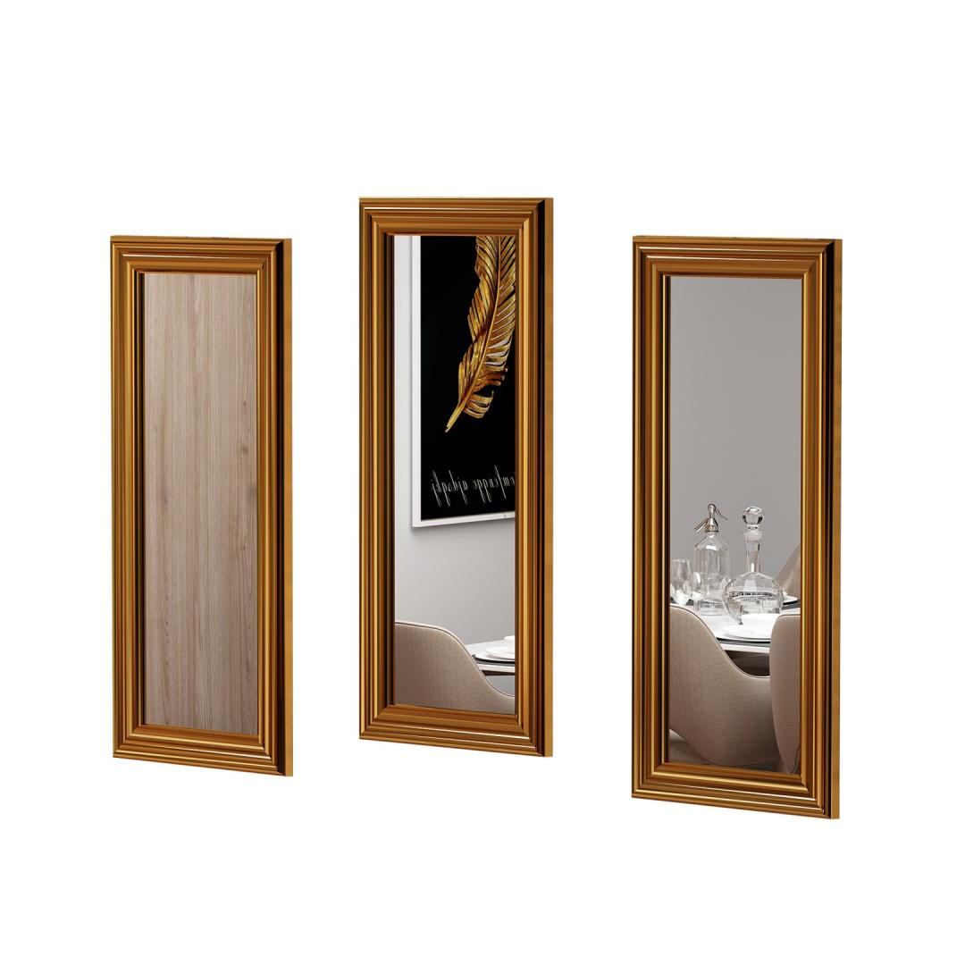 Korosta tilasi kauneutta upealla peilisarjallaMuuta asuintilasi tyylikkääksi ja tyylikkääksi upealla peilisarjalla. Tämä kolmen peilin setti on valmistettu äärimmäisen tarkasti ja yksityiskohtaisesti, ja se tuo loistoa mihin tahansa huoneeseen. Verraton laatu ja kestävyysPeilimme on valmistettu 100 % mdf-muovista, joka on rakennettu kestämään. Pronssikehyksinen pukeutumispeili huokuu hienostuneisuutta ja lisää ajatonta charmia sisustukseesi. Sen tyylikäs muotoilu ja virheetön viimeistely tekevät siitä täydellisen lisän mihin tahansa moderniin tai perinteiseen ympäristöön.Ilmaise ainutlaatuista tyyliäsiLeveydeltään 30 cm, korkeudeltaan 70 cm ja syvyydeltään 3 cm peilisarjamme sopii täydellisesti mille tahansa seinälle tai huoneeseen. Pronssinen väri lisää lämpöä ja rikkautta, ja se sulautuu vaivattomasti mihin tahansa värimaailmaan. Asetatpa ne sitten makuuhuoneeseen, olohuoneeseen tai eteiseen, nämä peilit heijastavat ainutlaatuista tyyliäsi ja persoonallisuuttasi. Luo illuusio tilastaMeidän peilimme eivät ainoastaan paranna huoneesi estetiikkaa, vaan ne myös luovat illuusion suuremmasta tilasta. Heijastamalla valoa ja heijastamalla sitä seinistä peilimme tekevät huoneestasi valoisamman ja tilavamman, mikä parantaa välittömästi tunnelmaa. Helppo asentaa ja ympäristöystävällinenMeidän peilisarjamme voidaan helposti asentaa seinälle, jolloin voit vaivattomasti luoda keskipisteen mihin tahansa huoneeseen. Ympäristöystävällinen flotal-e-peili takaa, että teet ympäristötietoisen valinnan laadusta tai tyylistä tinkimättä. Tekniset tiedot:Tuotetyyppi: .peilityyppi: ekologinen Flotal-peiliLeveys: 30 cmKorkeus: 70 cmSyvyys: 3 cmVoidaan asentaa seinälleVäri: pronssi Väri: Pronssi