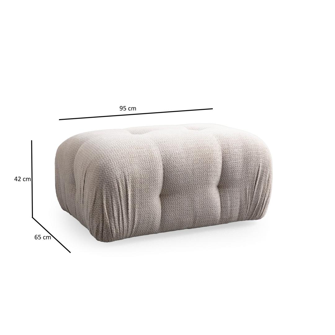 Kogege ülimat mugavust ja stiili meie luksusliku kreemja pouffe'iga. See elegantne ese lisab elegantsust teie kodu mis tahes ruumi, olgu see siis teie elutuba, magamistuba või isegi kontor. Võrratu mugavus ja kvaliteetValmistatud pöögipuu ja puitlaastplaadi raami kombinatsioonist, ei ole see pouff mitte ainult tugev ja vastupidav, vaid ka uskumatult mugav. 100% polüesterkangas lisab pehmet ja pluusset tunnet, muutes selle ideaalseks kohaks, kus pärast pikka päeva lõõgastuda. 28 dns pehme hall vaht ja 24 dns sulgede täidis tagavad maksimaalse mugavuse ja toe, samas kui 60% vahtplastist ja 40% silikoonvahust seljapadjad pakuvad täiendavat lõõgastust.Chiikne disain ja mitmekülgne kasutusviisKreemjas pouffe on elegantse ja moodsa disainiga, mis täiendab mis tahes sisustusstiili. Mustad plastmassist jalad lisavad rafineeritust, samas kui neutraalne kreemikas värv lisab teie ruumile peent elegantsi. Kas te kasutate seda jalgade toena, täiendava istumisalusena või isegi kohvilaual, see pouffe on mitmekülgne ja funktsionaalne. Transformeeri oma ruumiMuuda oma ruum hubaseks ja kutsuvaks oaasiks meie kreemja pouffiga. Olenemata sellest, kas võõrustate külalisi või lihtsalt lõõgastute hea raamatuga, muutub see pouff kiiresti teie lemmikmööbliesemeks. Hoolitsege end mugavuse ja stiiliga, mida väärite meie luksusliku kreemja pouffe'iga. Tehnilised üksikasjad:Raam: Puit: Pöögipuit / puitlaastplaatKangas: Materjal: 100% polüesterPikkus: 95 cm, laius: 65 cm, kõrgus: 75 cm.Vaht: 28 DNS pehme hall vaht / 24 DNS sulgiSeljapadjad: 60% vahtpolster / 40% silikoonvahtJalad: Mustad plastmassist jalad (3 cm)Istme kõrgus: 42 cmVärv: kreemjas Värv: Cream