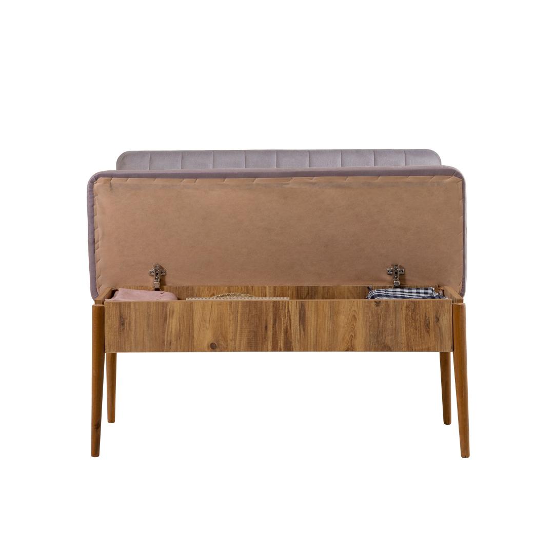 Our Bank is not just a stunning piece of furniture, but also a practical storage solution. The spacious storage unit, with dimensions of 95cm width, 12cm height, and 27cm depth, provides ample space to keep your belongings neatly organized and out of sight.