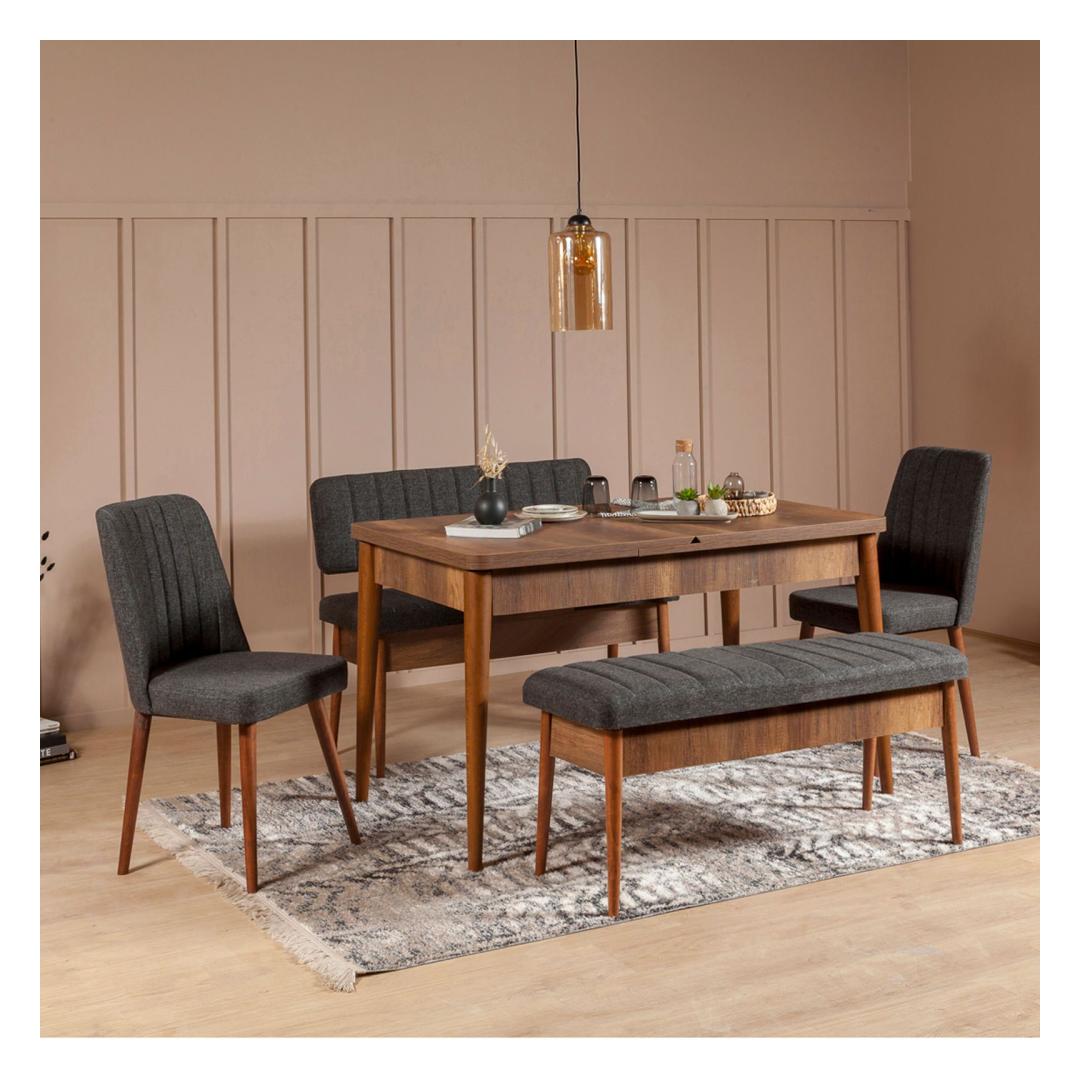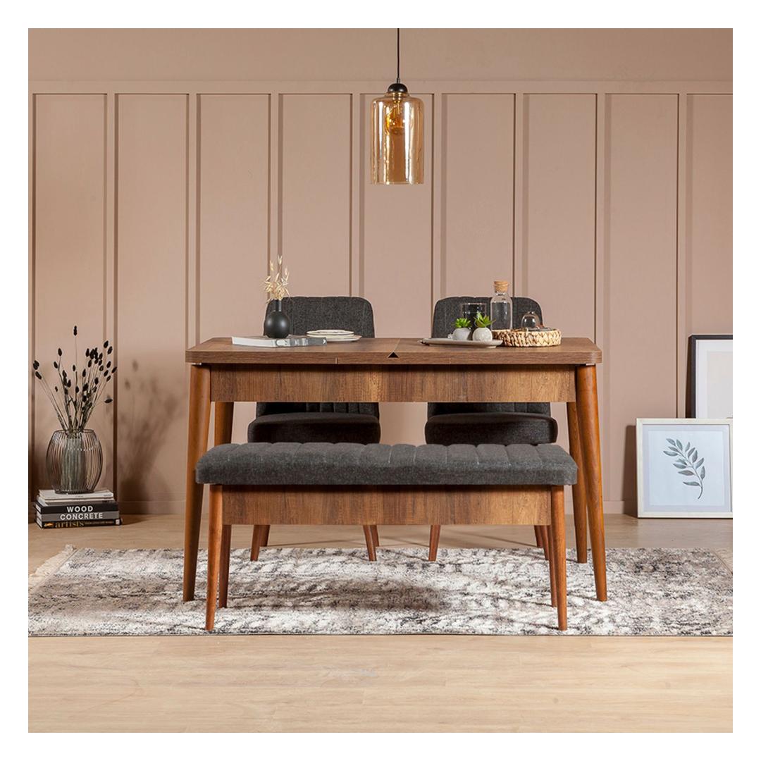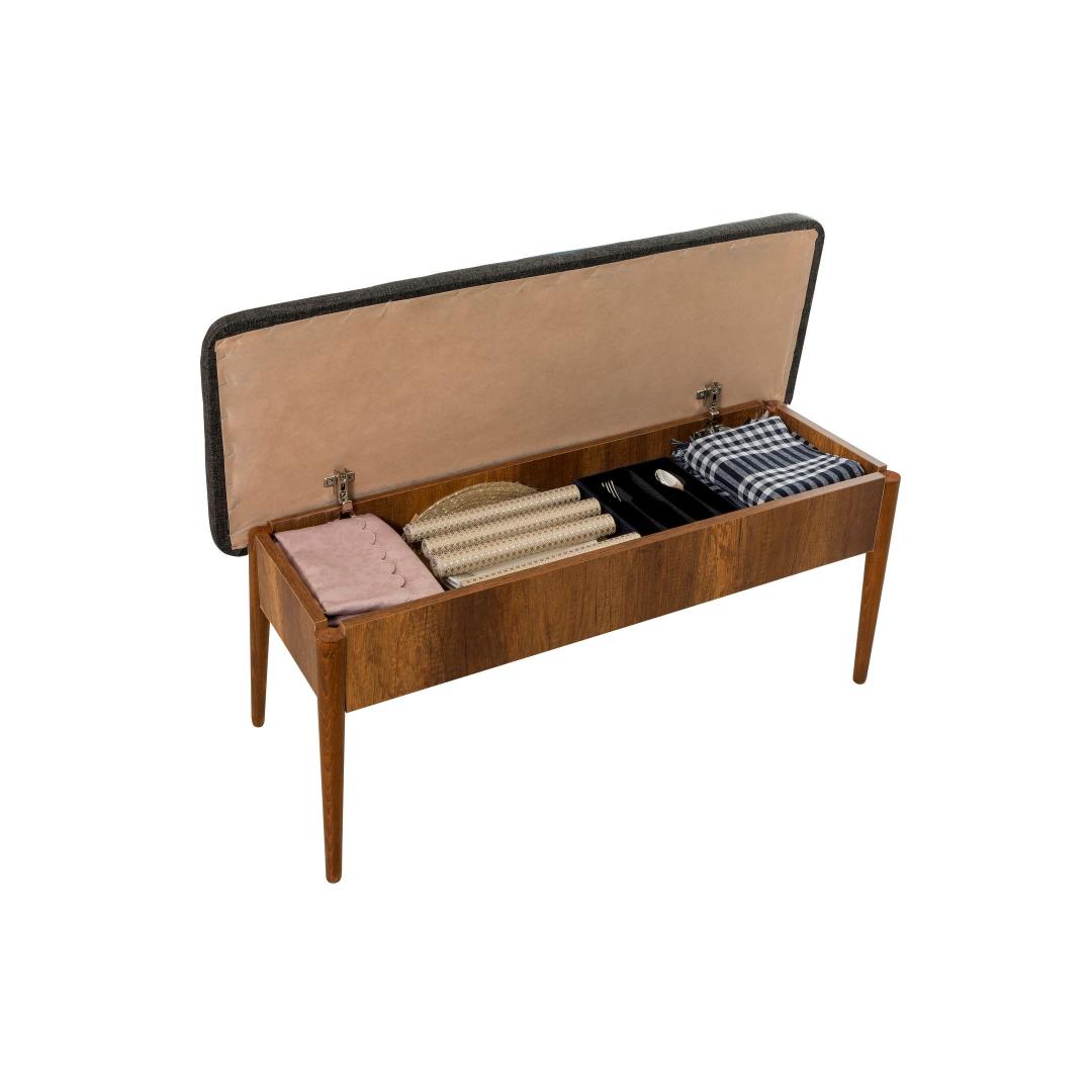 The bench is upholstered in 100% linen fabric, giving it a luxurious and sophisticated look that will elevate any room in your home. The combination of Walnut and Anthracite colors adds a touch of modernity and elegance to the overall design.