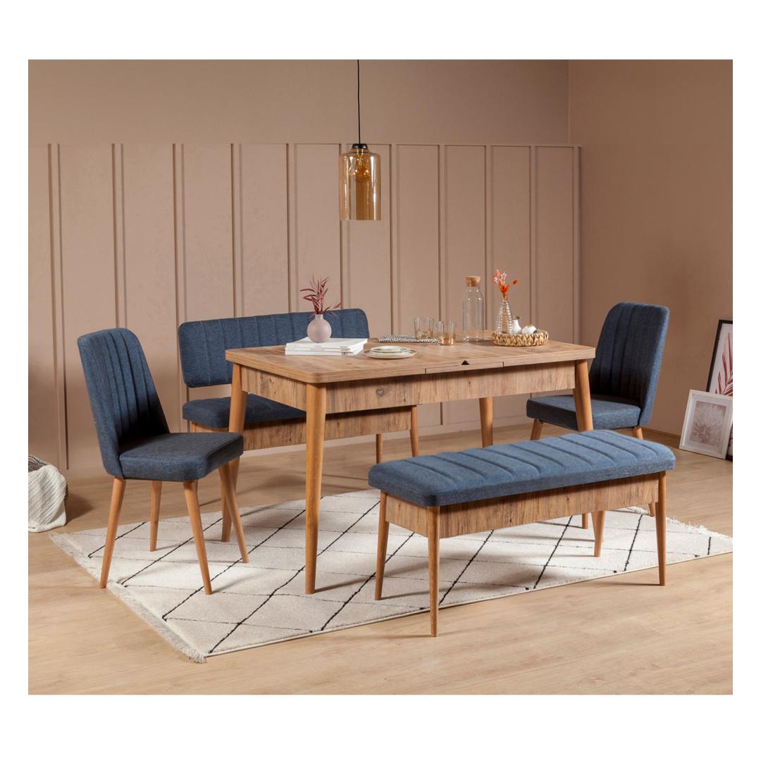 The combination of Atlantic Pine and Dark Blue colors creates a visually striking contrast that adds a touch of sophistication to any room. This bench is a true statement piece that will effortlessly enhance your interior decor.