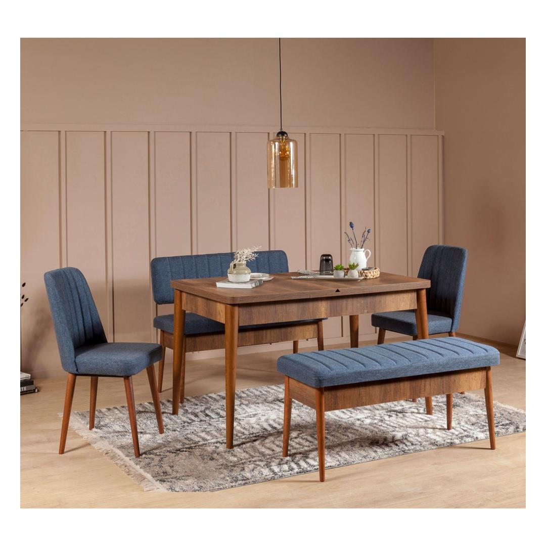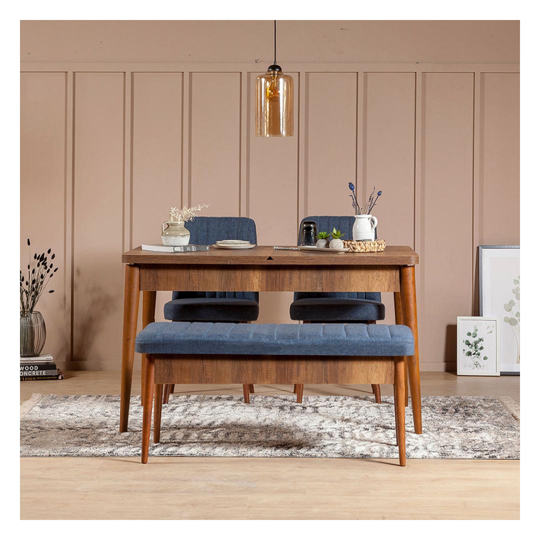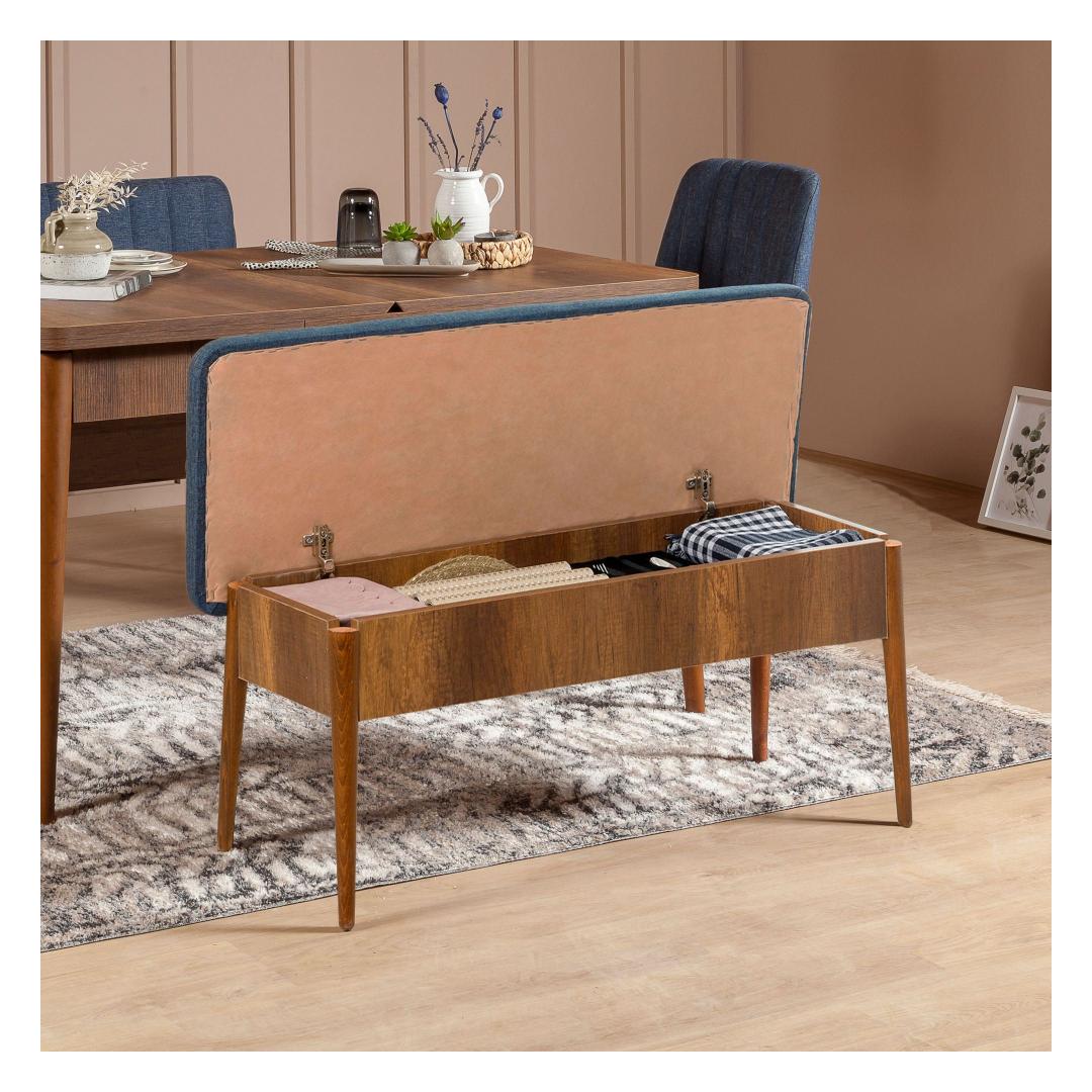 Whether you have a modern, rustic, or Scandinavian-inspired decor, this bench will seamlessly fit into your space. The walnut and dark blue colors add a pop of color and personality, making it a versatile piece that can complement any design aesthetic.
