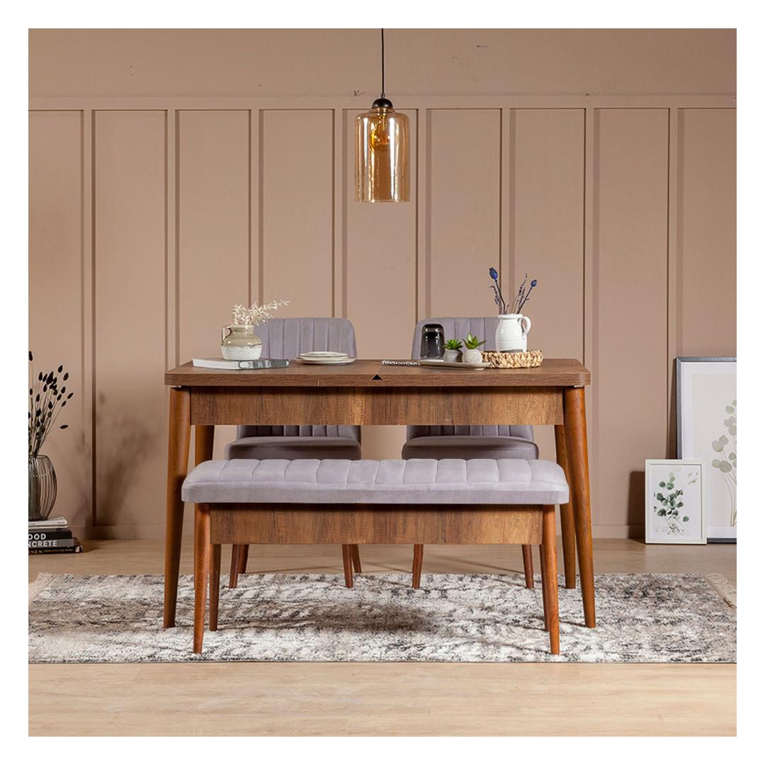 This bench is not just a piece of furniture, it's a statement of style and luxury. The 100% velvet fabric material adds a touch of opulence, while the hornbeam legs provide stability and durability. The sleek design and unique color combination of Walnut and Soho make this bench a must-have for those who appreciate modern and innovative design.