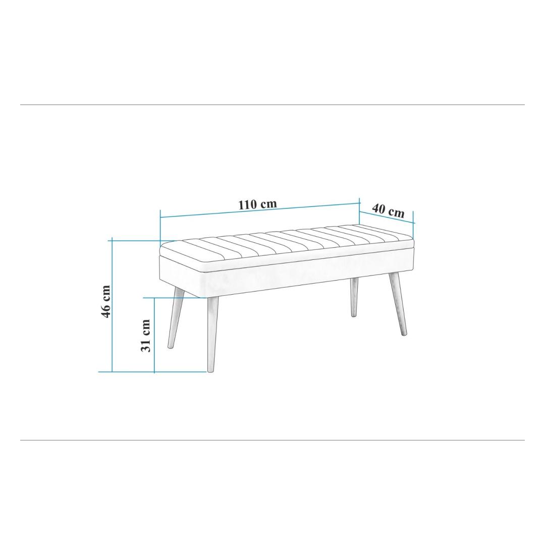 Not only does this bench add a touch of glamour to your space, but it also offers practical storage solutions with its storage unit size of 95 cm x 12 cm x 27 cm. The 18 mm thickness of the bench ensures comfort and support, while the seat height of 46 cm and leg's height of 31 cm make it the perfect addition to any room.