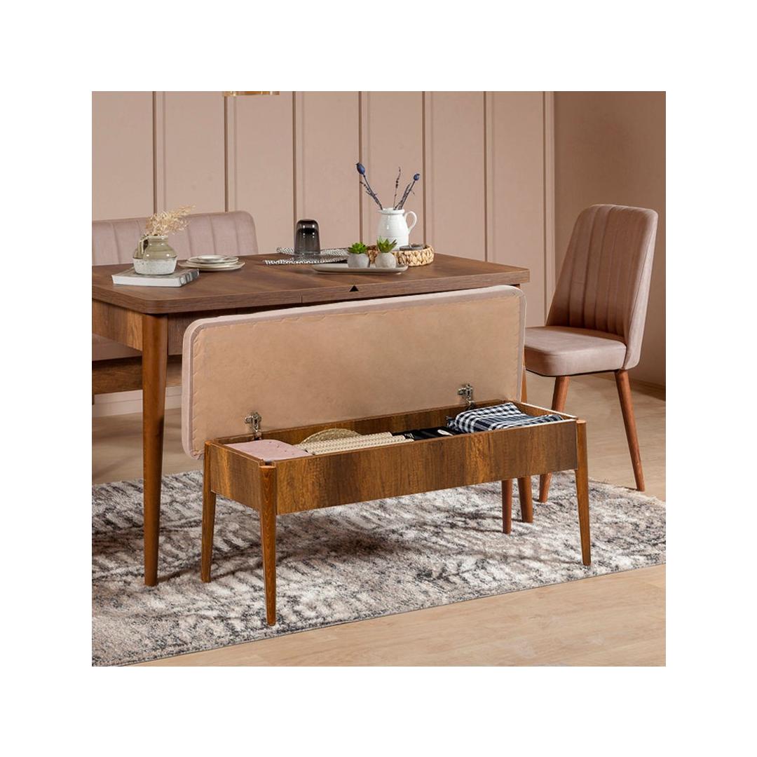 Crafted from 100% melamine coated particle board, our bench is built to last. The sturdy hornbeam legs provide exceptional stability and durability, ensuring that this piece will be a cherished part of your home for years to come.