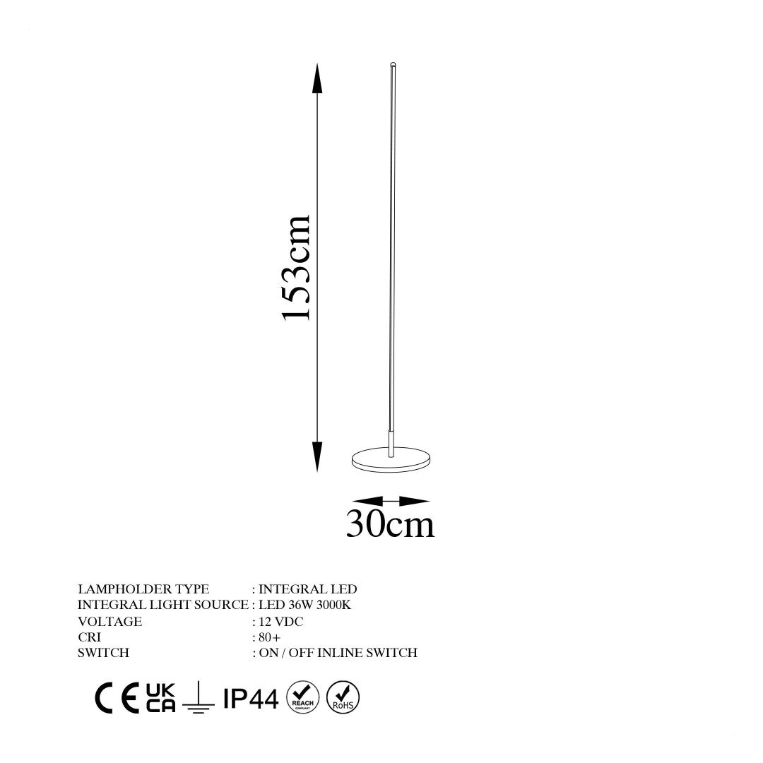 Diameter: 30 cm Height: 153 cm