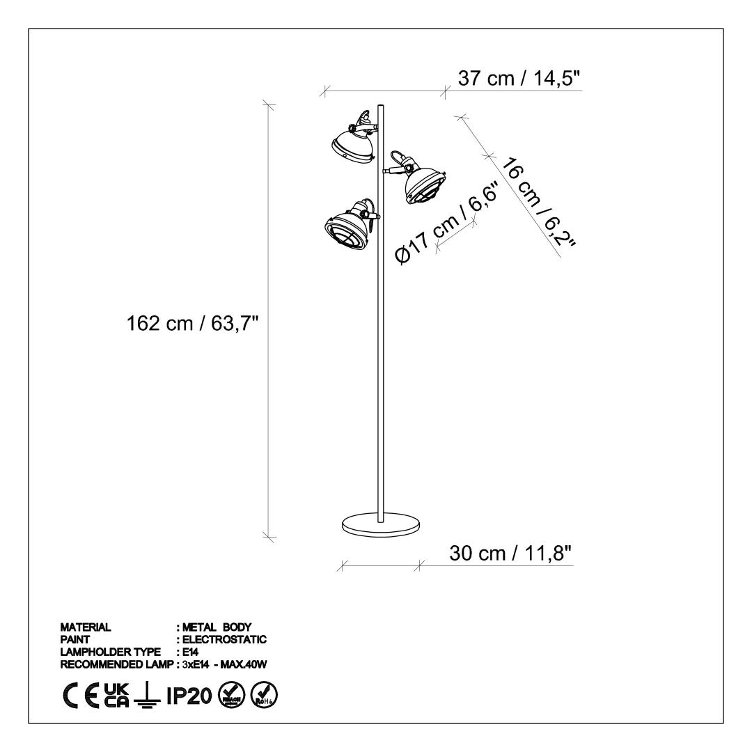 Valgustage oma ruumi meie uimastava metallkorpusega põrandalambiga. See elegantne ja moodne disain lisab elegantsi igasse teie kodu ruumi. Valgusti must värv sulandub vaevata mis tahes sisustusstiiliga, muutes selle mitmekülgseks ja ajatuks esemeks. Elegantne disain igasse tuppaMetallist korpusega põrandalambil on minimalistlik disain, mis täiendab iga ruumi. Olenemata sellest, kas paigutate selle elutuppa, magamistuppa või kontorisse, see lamp tõstab koheselt ruumi atmosfääri. Kvaliteetne käsitööMetallkorpusega valmistatud põrandalamp ei ole mitte ainult stiilne, vaid ka vastupidav. Tugev alusplaat tagab stabiilsuse, samas kui pikk kaabel võimaldab hõlpsasti paigutada igas ruumis. Kergesti kasutatavKaabli peal olev sisse- ja väljalülitusnupp võimaldab lampi mugavalt sisse ja välja lülitada, ilma et peaks ulatama lambi enda lüliti järele. Lihtsalt ühendage see vooluvõrku ja olete valmis nautima lambi sooja sära. Tehnilised üksikasjad:Korki suurus: Ø17 h:16 cmSuurus: 37 x 37 x 162 cmAlusplaadi suurus: Ø30 h:2 cmKaabli pikkus: 250 cmPistikupesa tüüp: 3 x E 14 Max 40 WPirn ei kuulu komplekti220-240 VIP-kood: IP20Värv: must Värv: Black