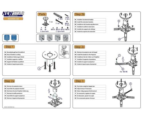 This universal NewStar projector ceiling mount, model BEAMER-C50, allows you to mount a projector/beamer to any ceiling.