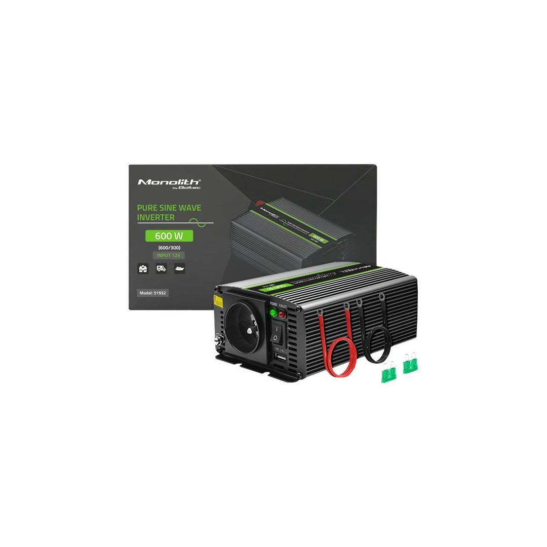 QOLTEC 51932 Pure Sine Wave Inverter Monolith / 300W / 600W / 12V to 230V QOLTEC 51932 Pure Sine Wave Inverter Monolith / 300W / 600W / 12V to 230V